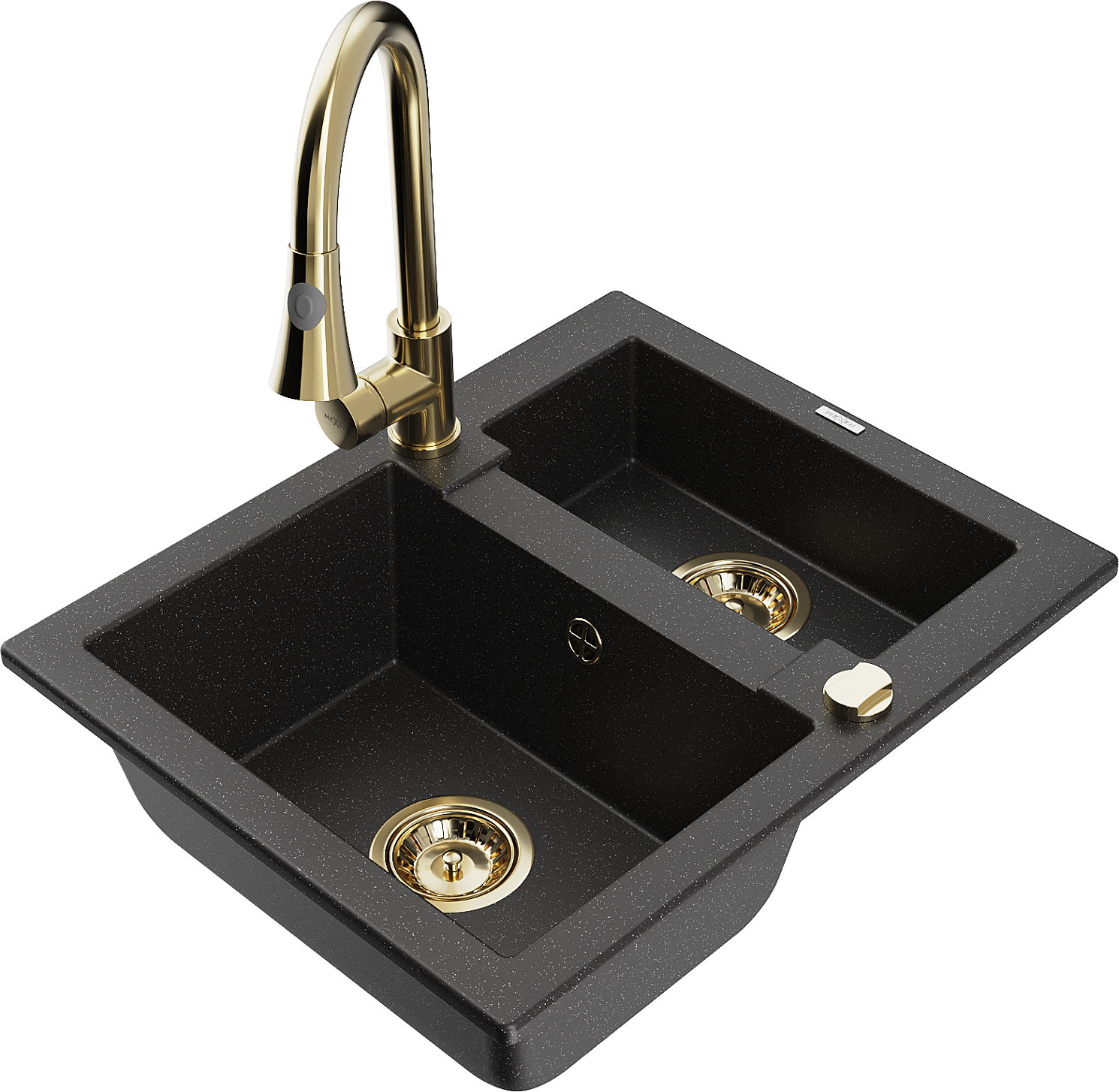 Mexen Carlos lavello in granito 1,5 vasca con rubinetto da cucina Elia, nero/argento metallizzato - 6518-73-670101-50