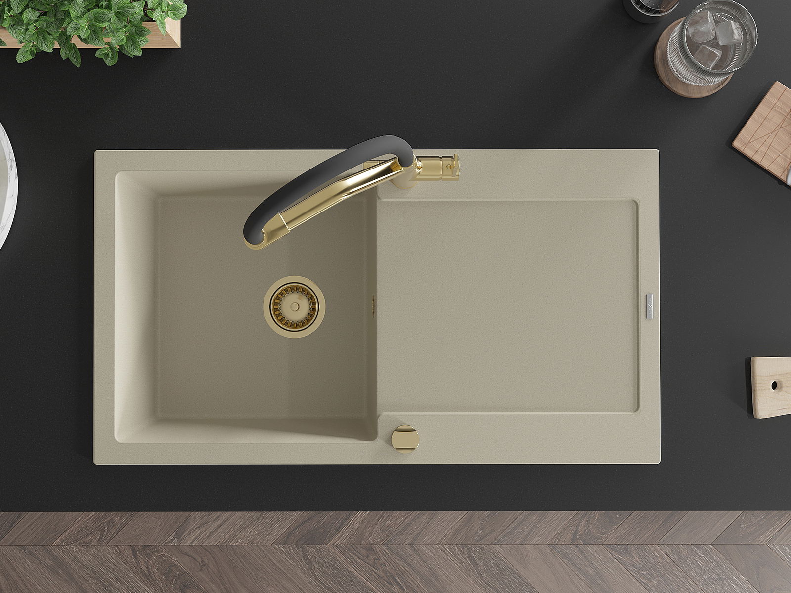 Mexen Leo lavello in granito 1 vasca con scolapiatti e rubinetto Duo, beige - 6501-69-671701-57-G