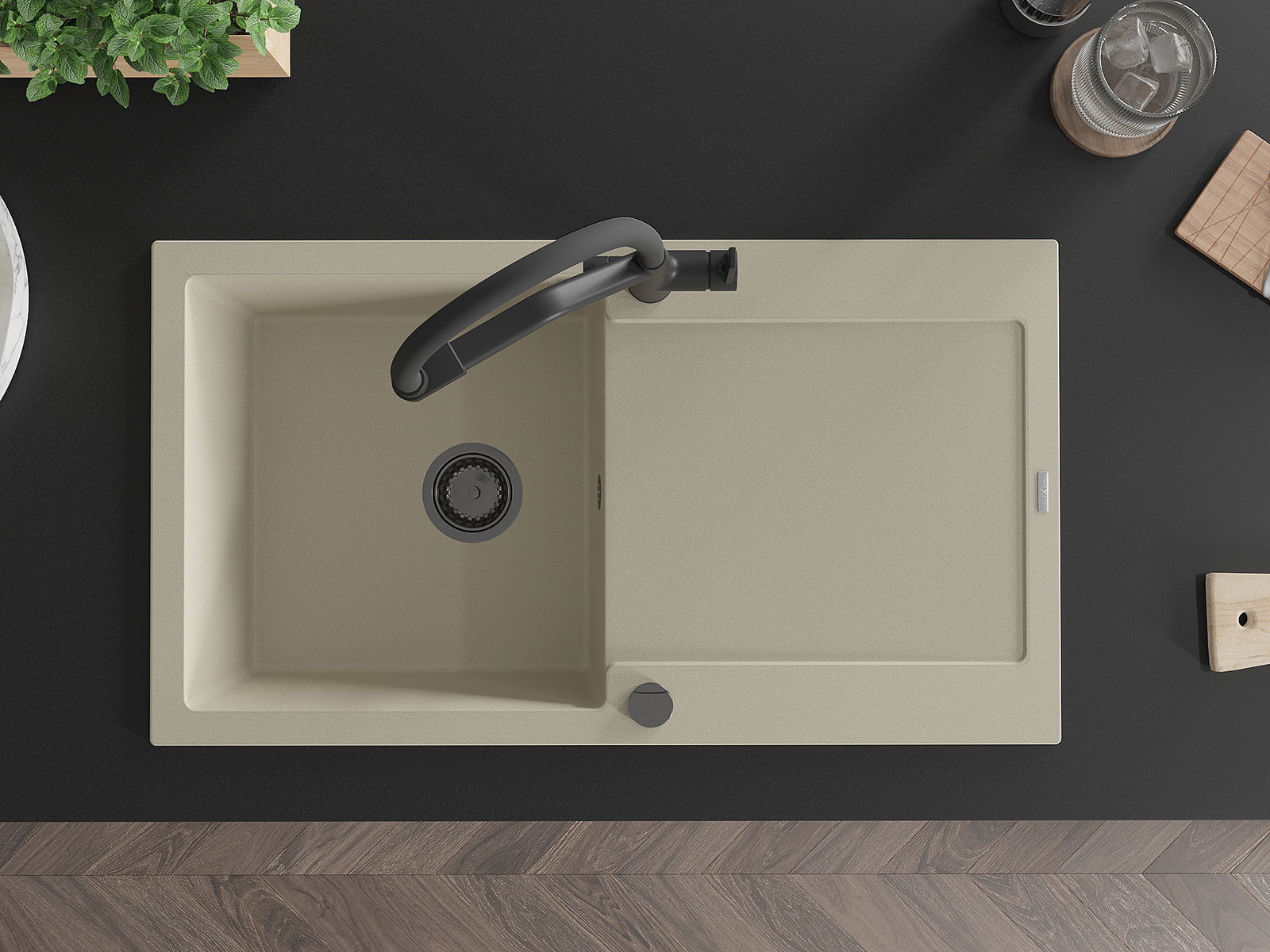 Mexen Leo lavello da cucina in granito 1 vasca con sgocciolatoio e rubinetto Duo, beige - 6501-69-671701-70-B