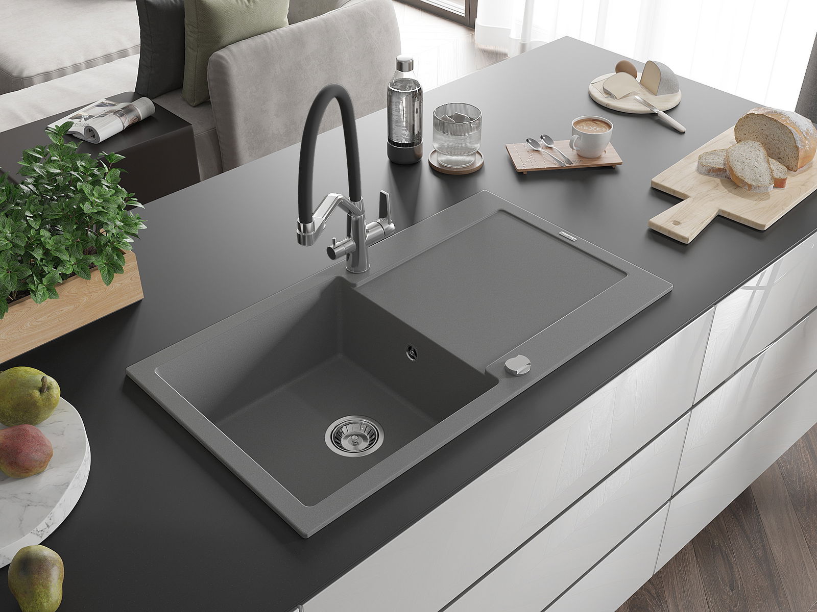 La scelta di un lavello con sgocciolatoio è una soluzione pratica che consente di riporre piatti, verdure e frutta lavati. Lo sgocciolatoio facilita la cucina quotidiana e aiuta a mantenere l'ordine in cucina.