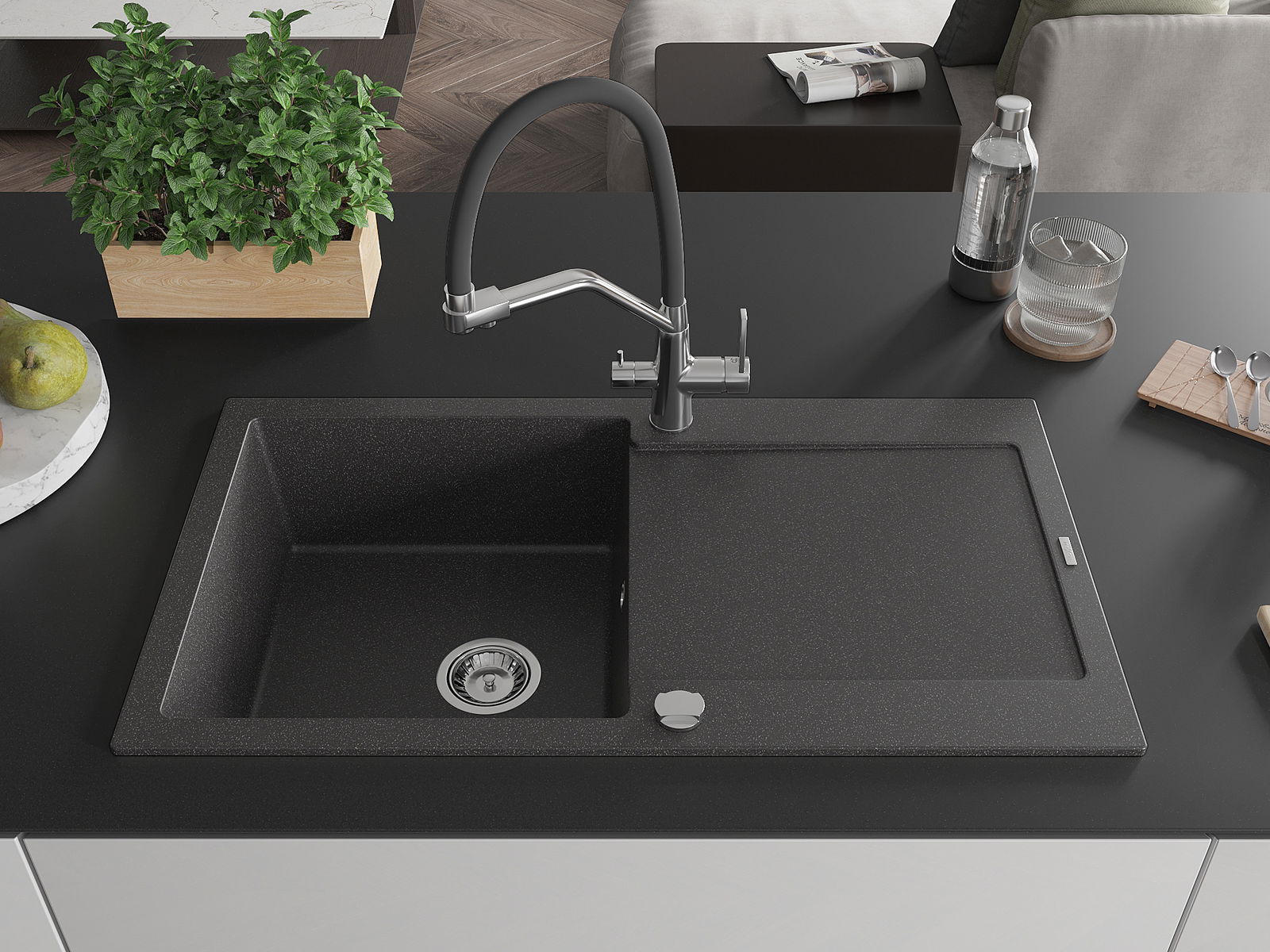 La scelta di un lavello con sgocciolatoio è una soluzione pratica che consente di riporre piatti, verdure e frutta lavati. Lo sgocciolatoio facilita la cucina quotidiana e aiuta a mantenere l'ordine in cucina.