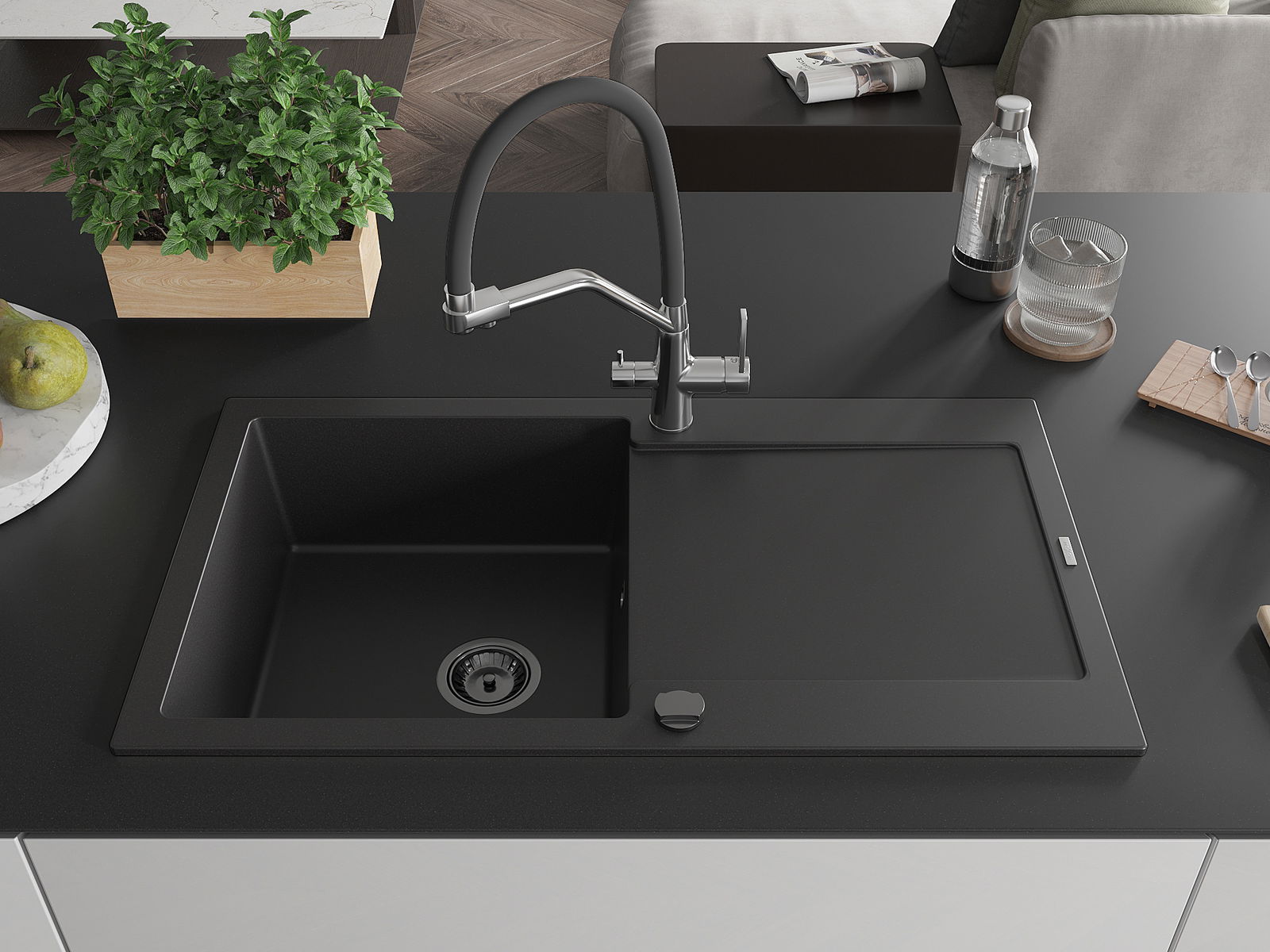 La scelta di un lavello con sgocciolatoio è una soluzione pratica che consente di riporre piatti, verdure e frutta lavati. Lo sgocciolatoio facilita la cucina quotidiana e aiuta a mantenere l'ordine in cucina.