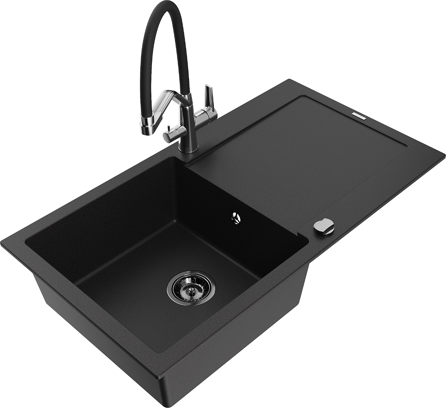 Mexen Leo lavello da cucina in granito a 1 vasca con scolapiatti e miscelatore Duo, nero - 6501-77-671701-07-B