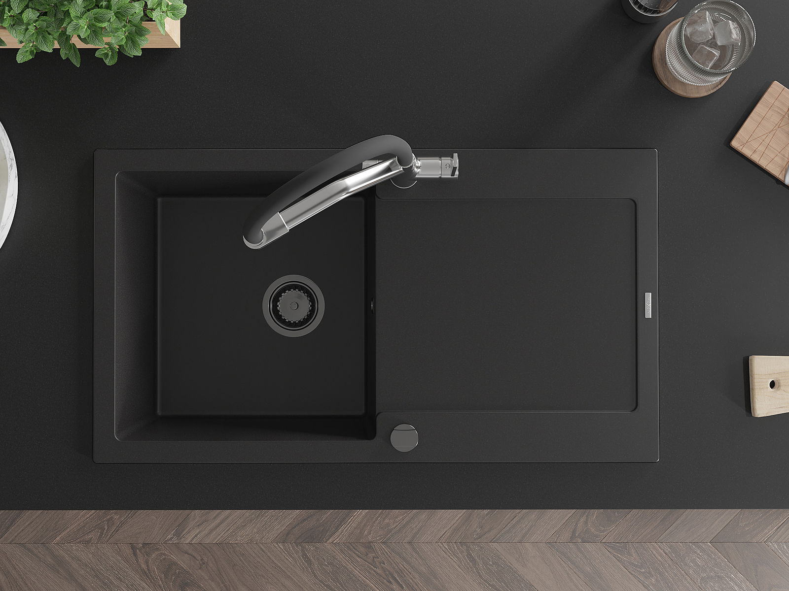 Il lavello è realizzato in granito di alta qualità. Rappresenta un complemento elegante e, soprattutto, pratico per ogni cucina, indipendentemente dal suo stile. L'alta qualità e la durata del granito garantiscono un utilizzo che dura per molti anni.
