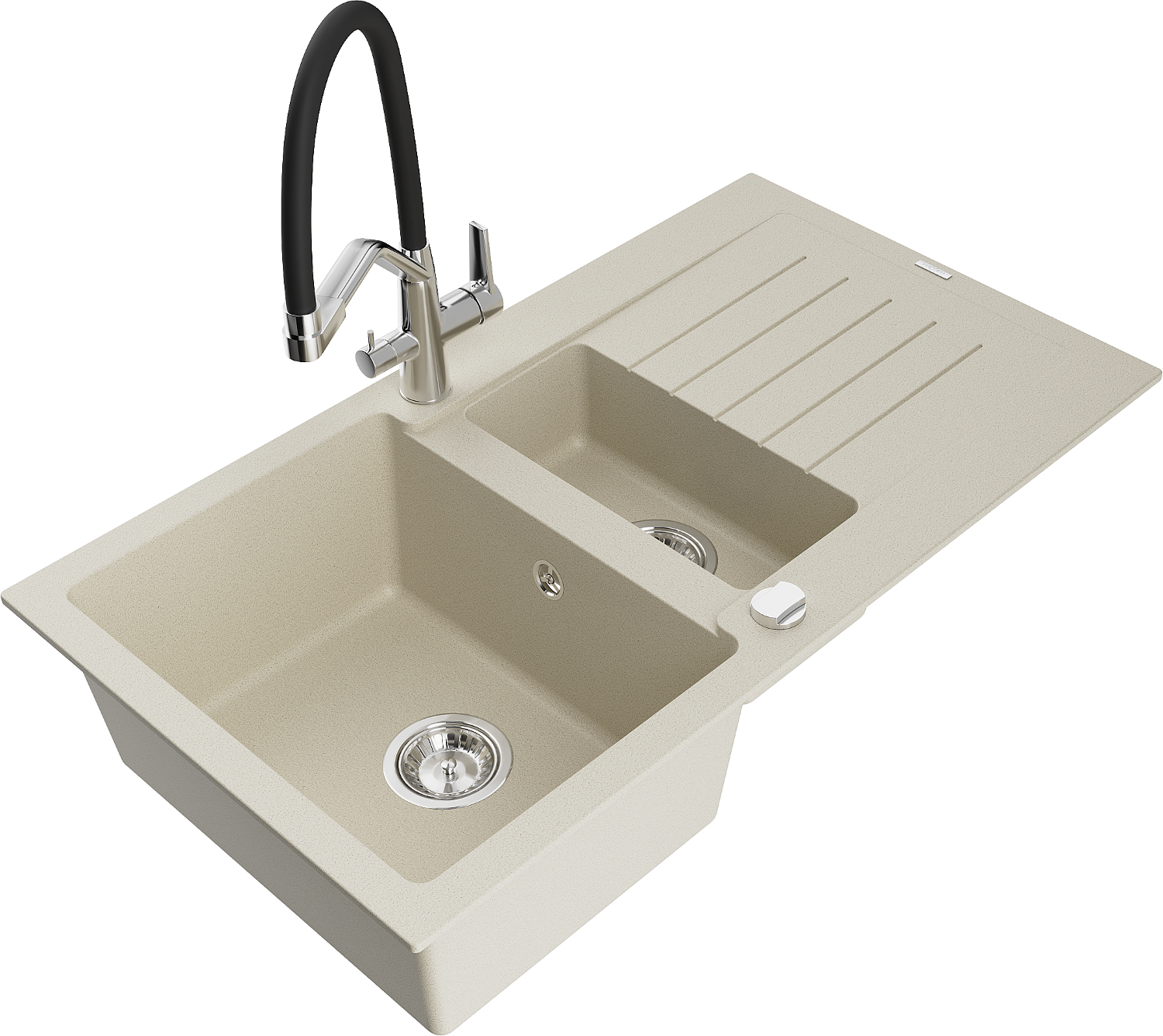 Mexen Matias lavello in granito 1,5 vasca con sgocciolatoio e rubinetto da cucina Duo, beige - 6502-69-671701-07