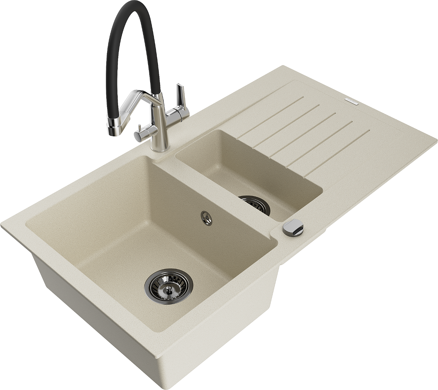 Mexen Matias lavello in granito 1,5 vasca con scolapiatti e miscelatore Duo, beige - 6502-69-671701-07-B