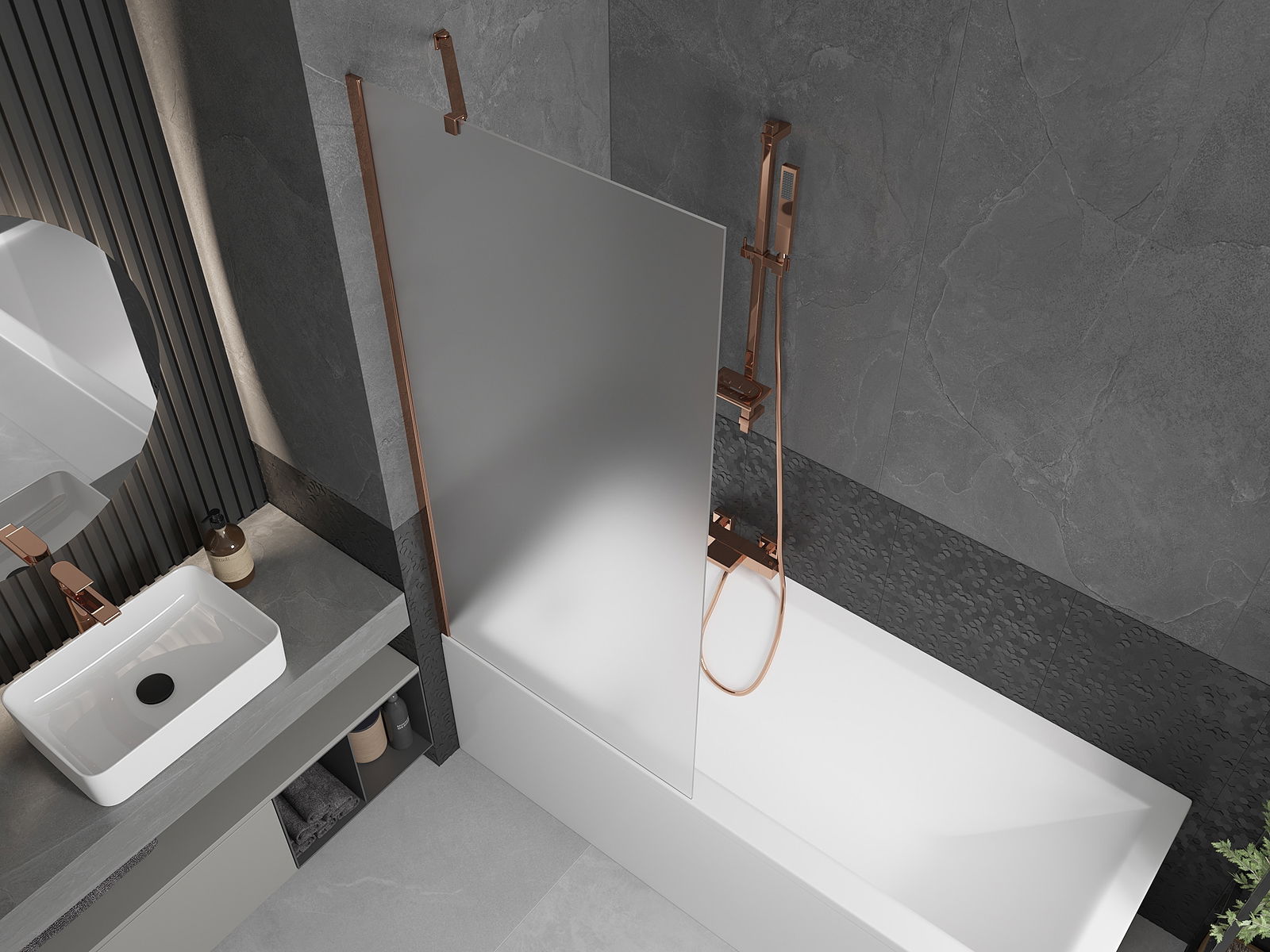 Mexen Next paratia per vasca da bagno a 1 anta 80 x 150 cm, smerigliato, oro rosa - 895-080-000-00-30-60