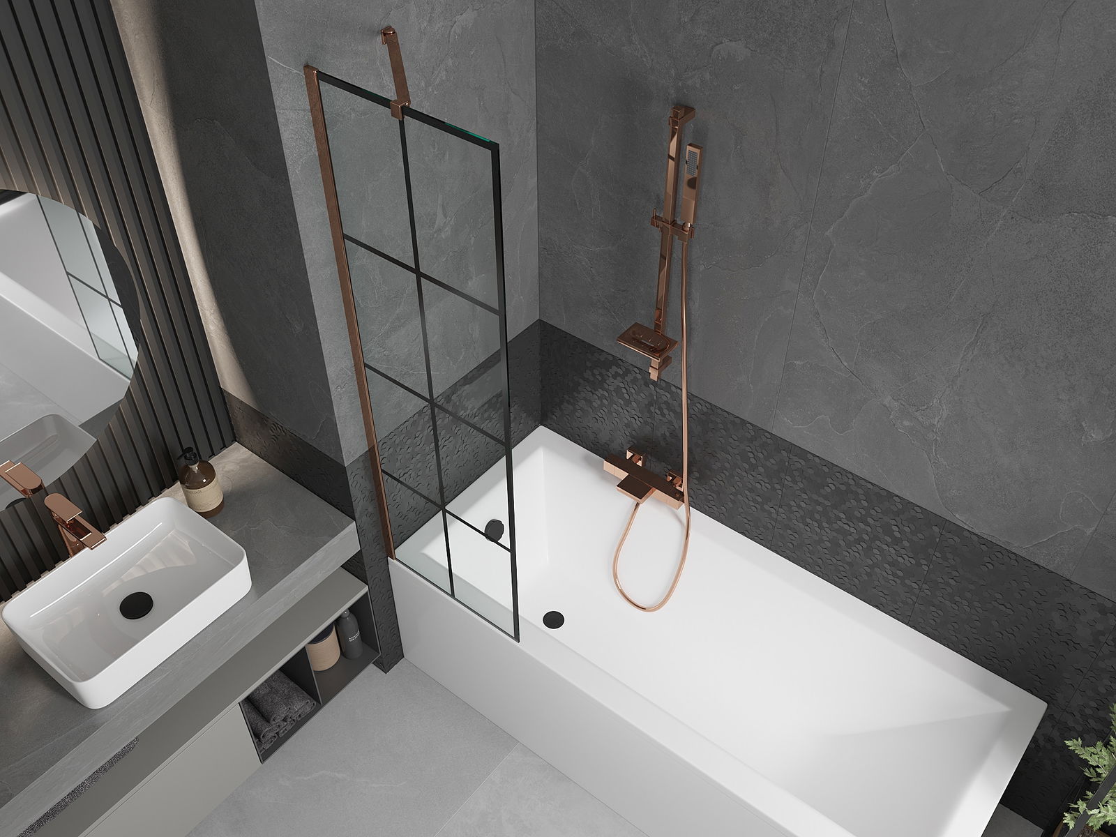 Mexen Next paraschermo doccia a 1 anta 50 x 150 cm, griglia nera, oro rosa - 895-050-000-00-77-60