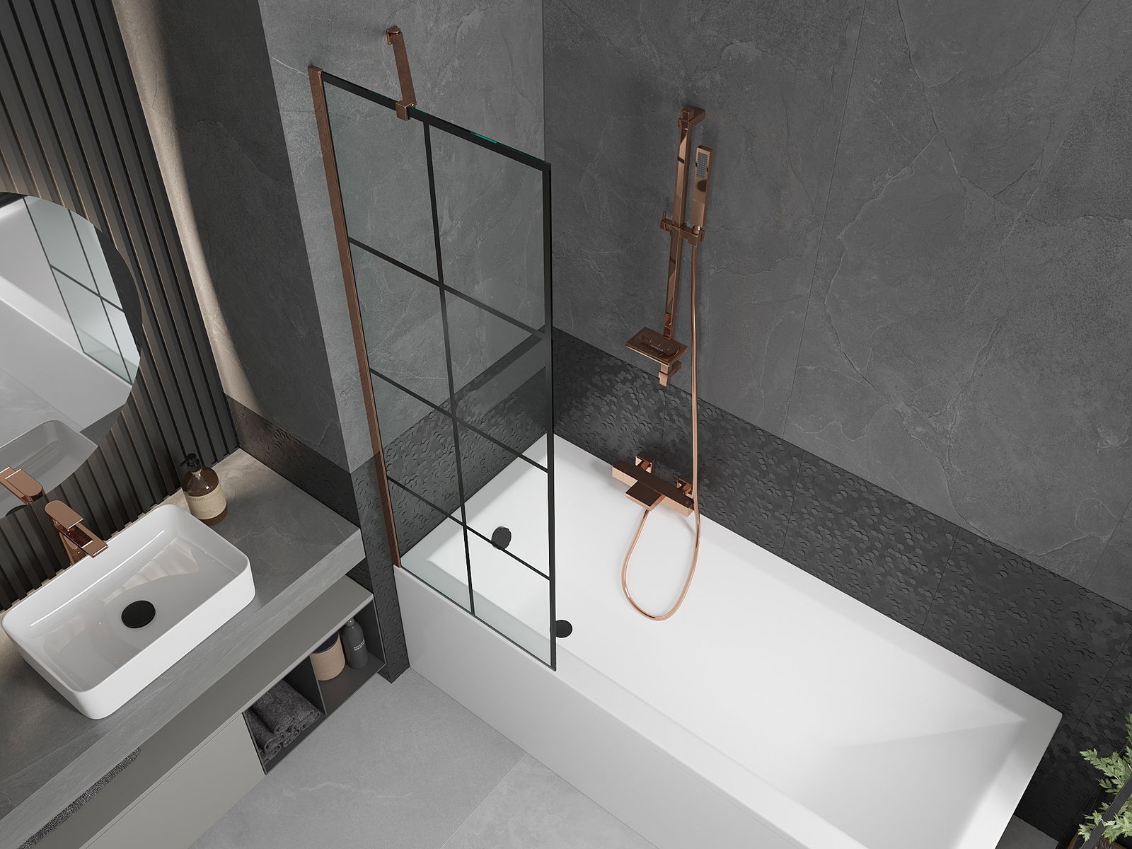 Mexen Next paraschermo doccia a 1 anta 60 x 150 cm, griglia nera, oro rosa - 895-060-000-00-77-60