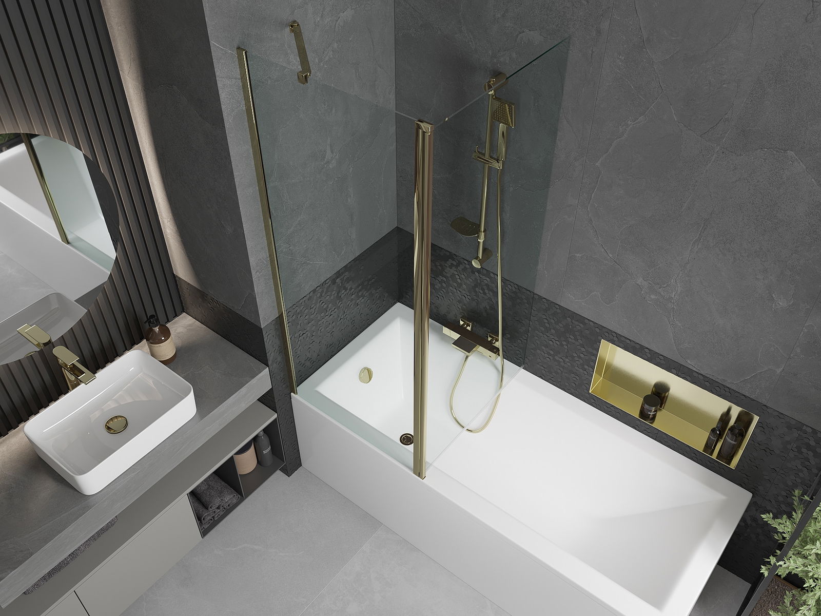 Mexen Flip paravento per vasca da bagno a 2 ante 140 x 150 cm, trasparente, dorato - 894-140-101-50-00