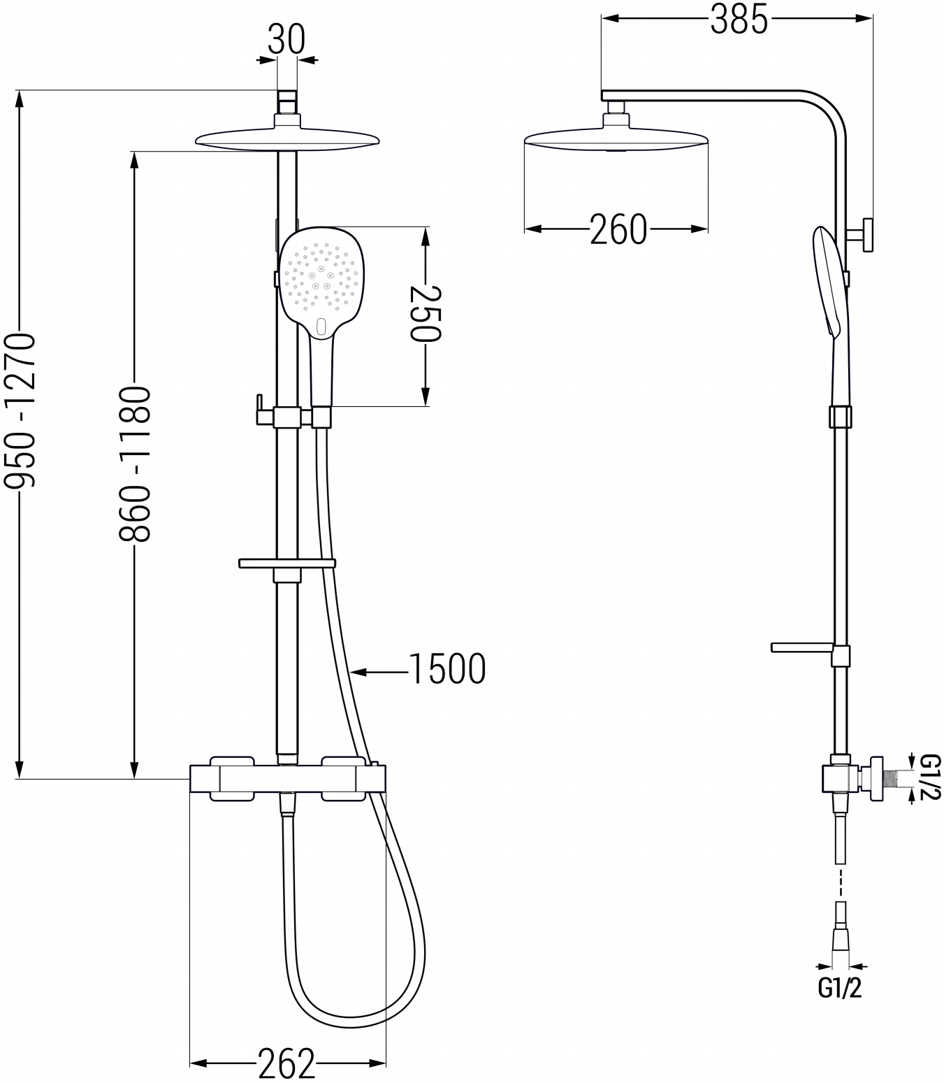 Altezza: 950-1270 mm