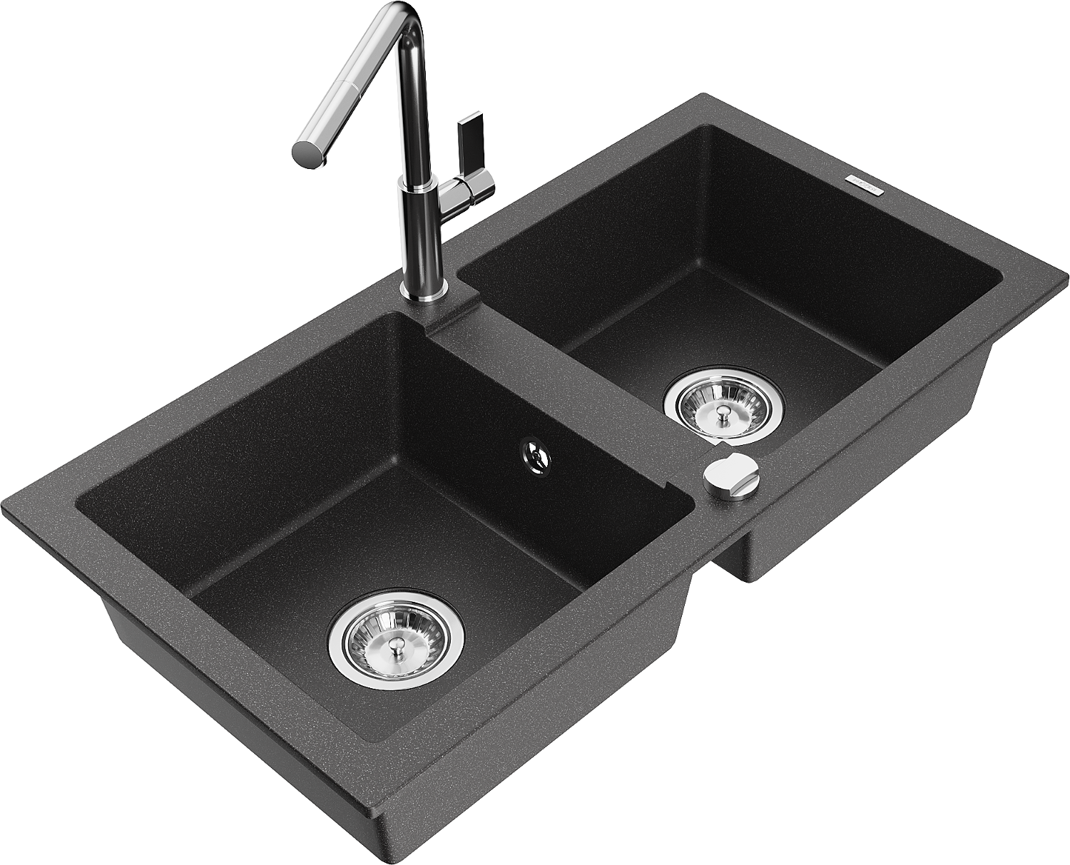 Mexen Mario lavello in granito a 2 vasche con rubinetto da cucina Flora, nero maculato - 6504-76-670401-00
