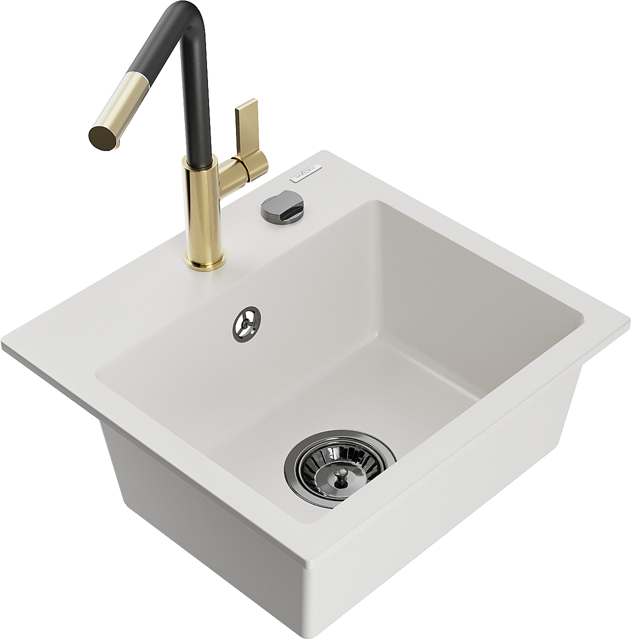 Mexen Milo lavello in granito a 1 vasca con miscelatore cucina Flora, bianco - 6505-20-670401-57-B