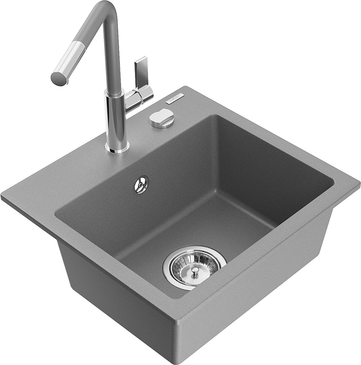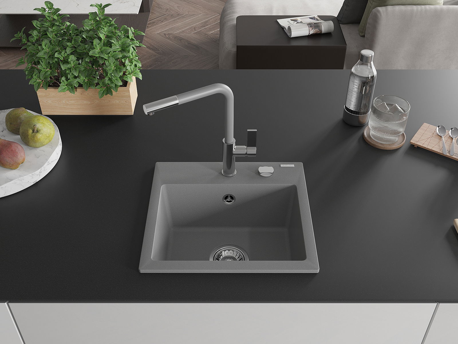 Mexen Milo lavello in granito 1-vasca con miscelatore da cucina Flora, grigio - 6505-71-670401-06