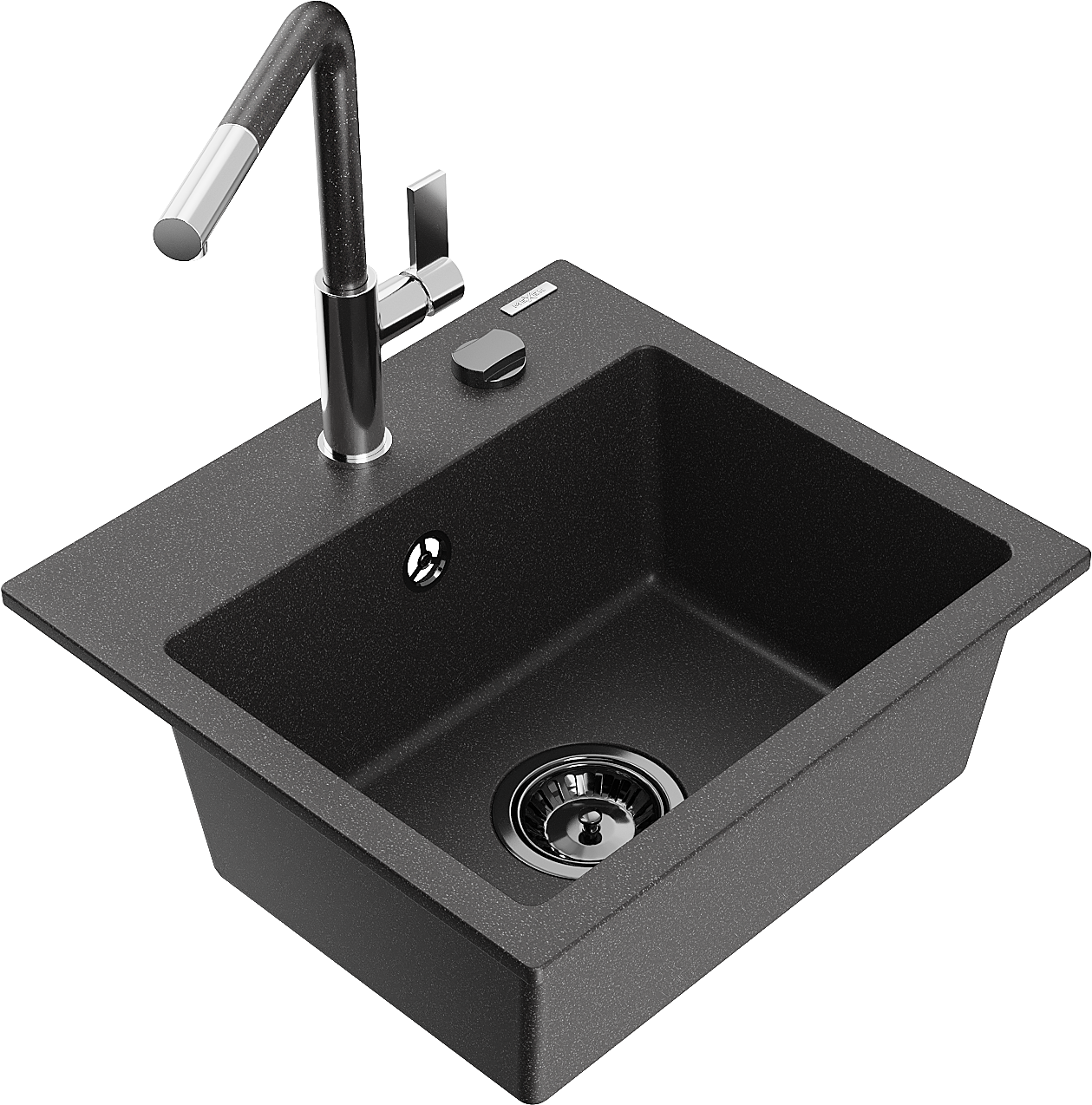 Mexen Milo lavello in granito a 1 vasca con miscelatore da cucina Flora, nero maculato - 6505-76-670401-08-B