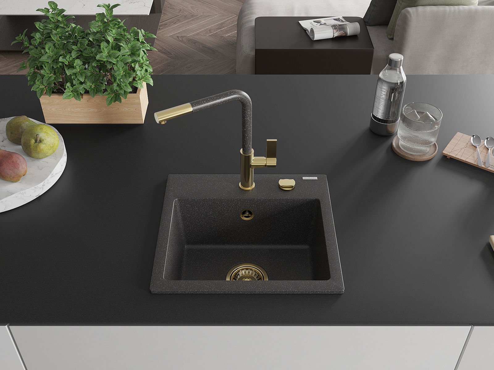 Il lavello è realizzato in granito di alta qualità. Rappresenta un complemento elegante e, soprattutto, pratico per ogni cucina, indipendentemente dal suo stile. L'alta qualità e la durata del granito garantiscono un utilizzo che dura per molti anni.