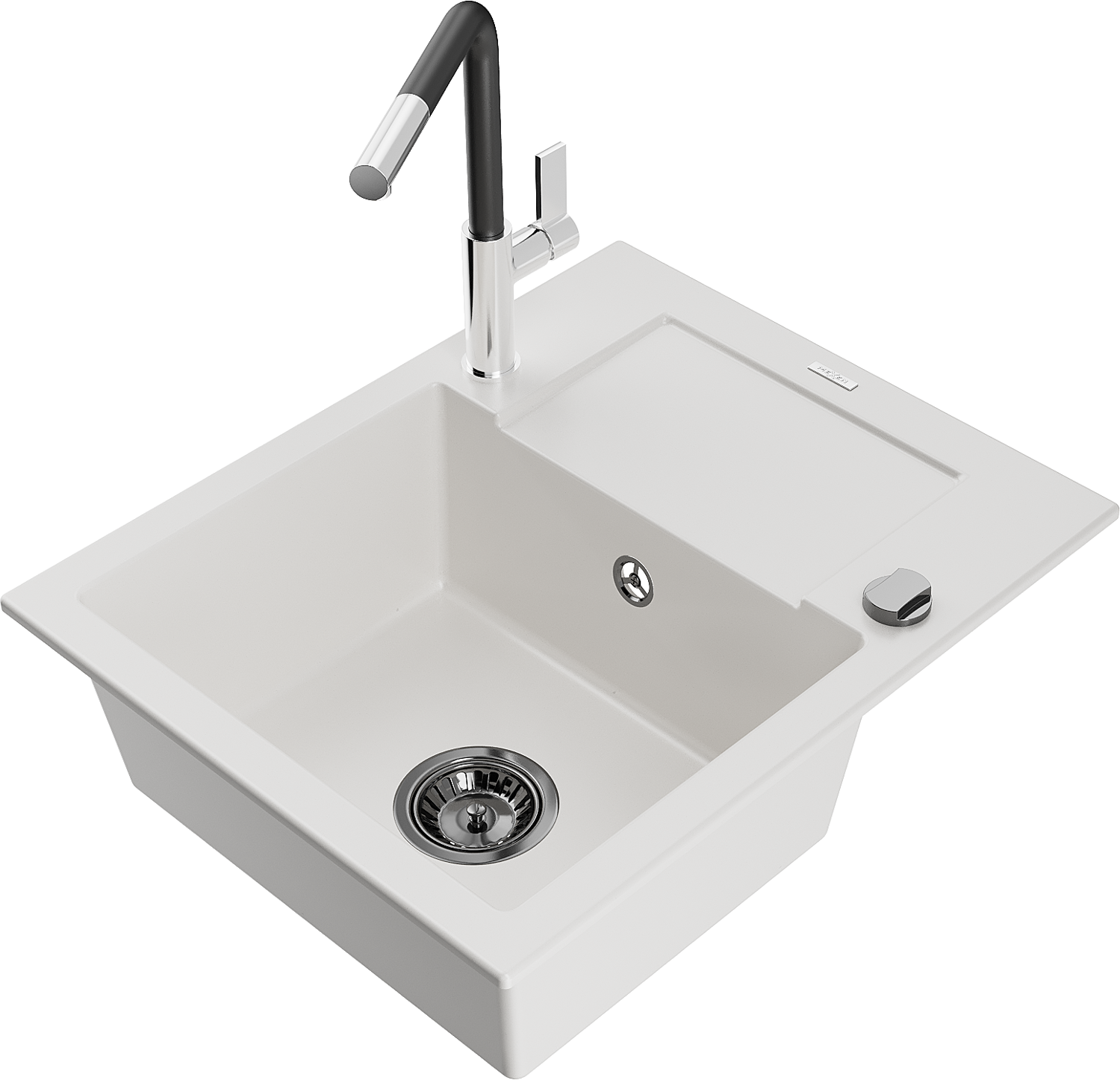 Mexen Enzo lavello in granito a 1 vasca con scolapiatti e miscelatore Flora, bianco - 6506-20-670401-07-B