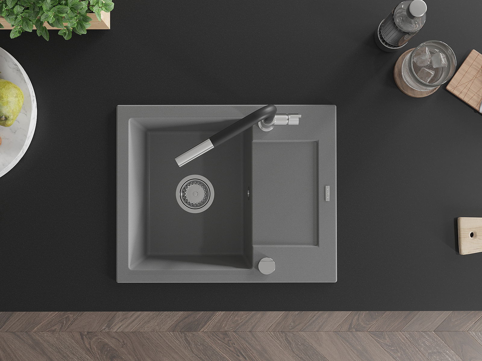 Il lavello è realizzato in granito di alta qualità. Rappresenta un complemento elegante e, soprattutto, pratico per ogni cucina, indipendentemente dal suo stile. L'alta qualità e la durata del granito garantiscono un utilizzo che dura per molti anni.