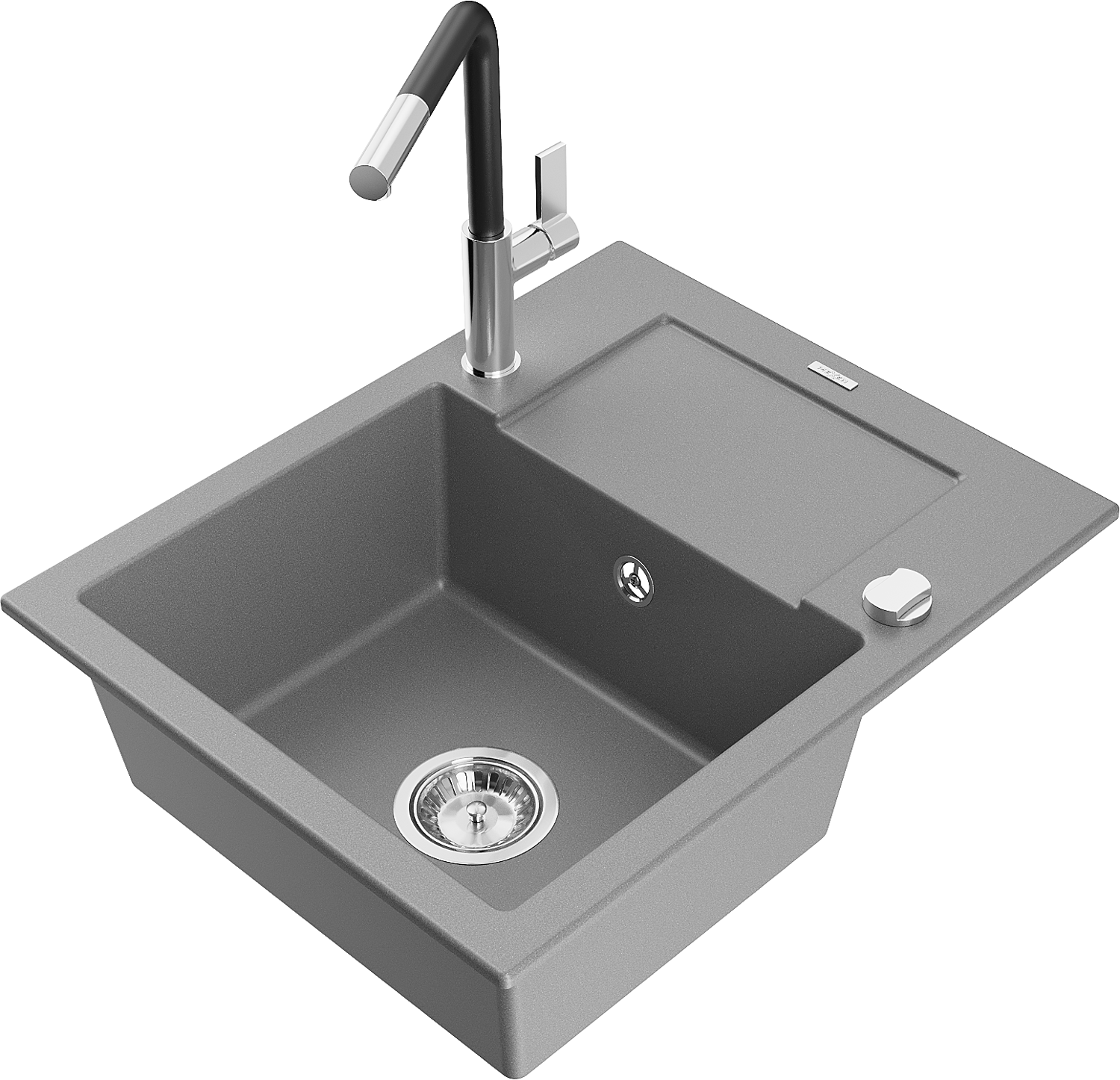 Mexen Enzo lavello da cucina in granito 1-vasca con scolapiatti e rubinetto cucina Flora, grigio - 6506-71-670401-07