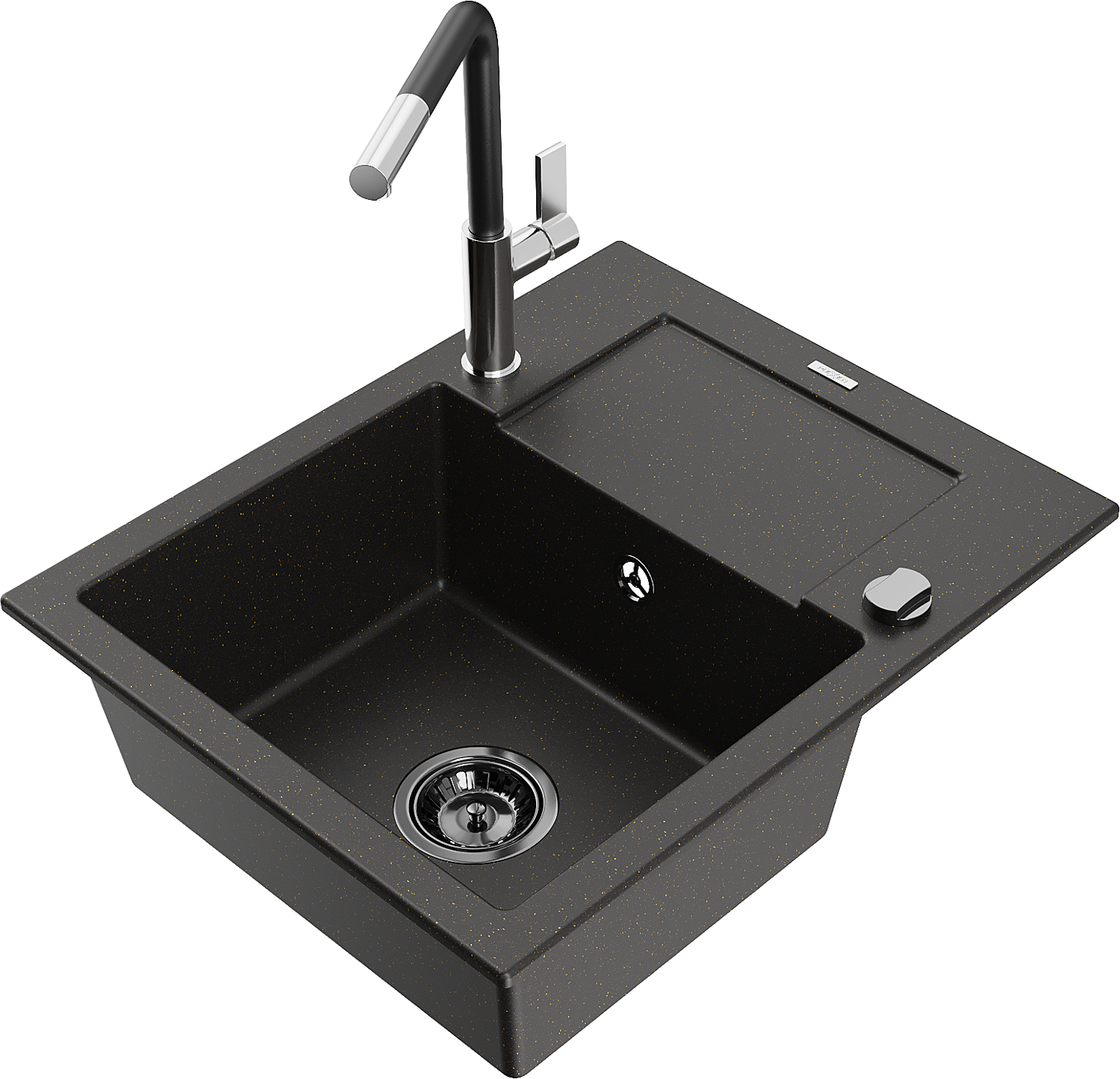 Mexen Enzo lavello in granito 1-vasca con sgocciolatoio e rubinetto da cucina Flora, nero/oro metallico - 6506-75-670401-07-B