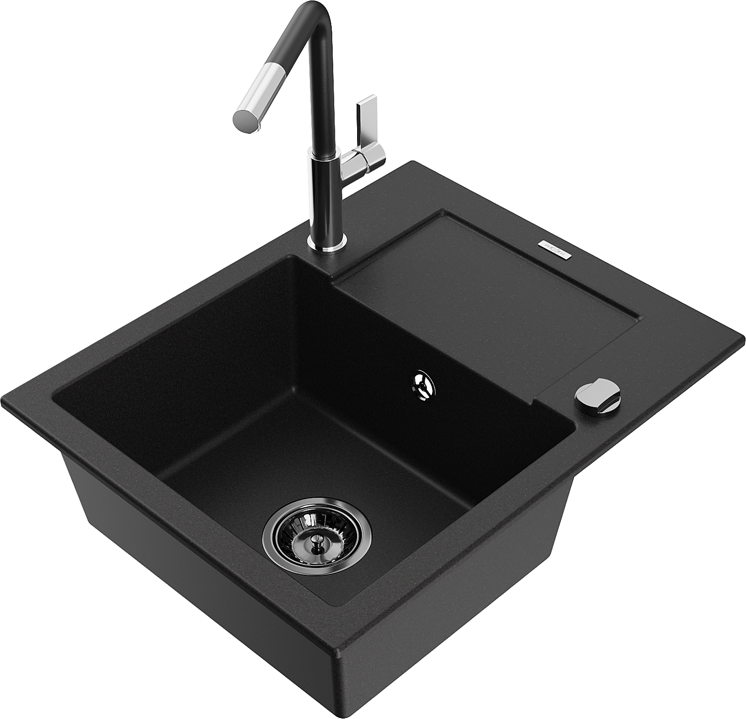 Mexen Enzo lavello in granito a 1 vasca con scolapiatti e rubinetto da cucina Flora, nero - 6506-77-670401-07-B