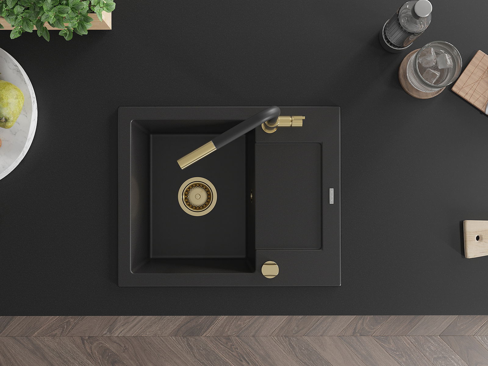 Mexen Enzo lavello in granito a 1 vasca con scolapiatti e miscelatore cucina Flora, nero - 6506-77-670401-57-G