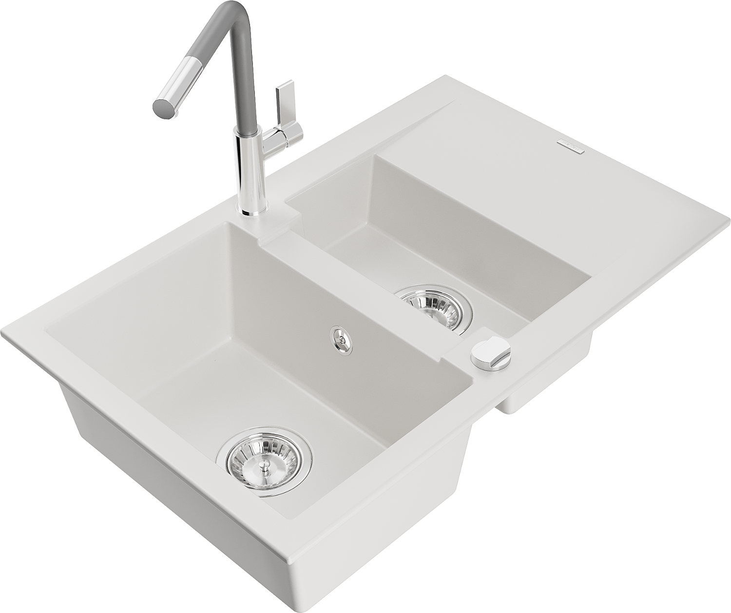 Mexen Gaspar lavello in granito 1,5 vasca con scolapiatti e rubinetto cucina Flora, bianco - 6507-20-670401-06