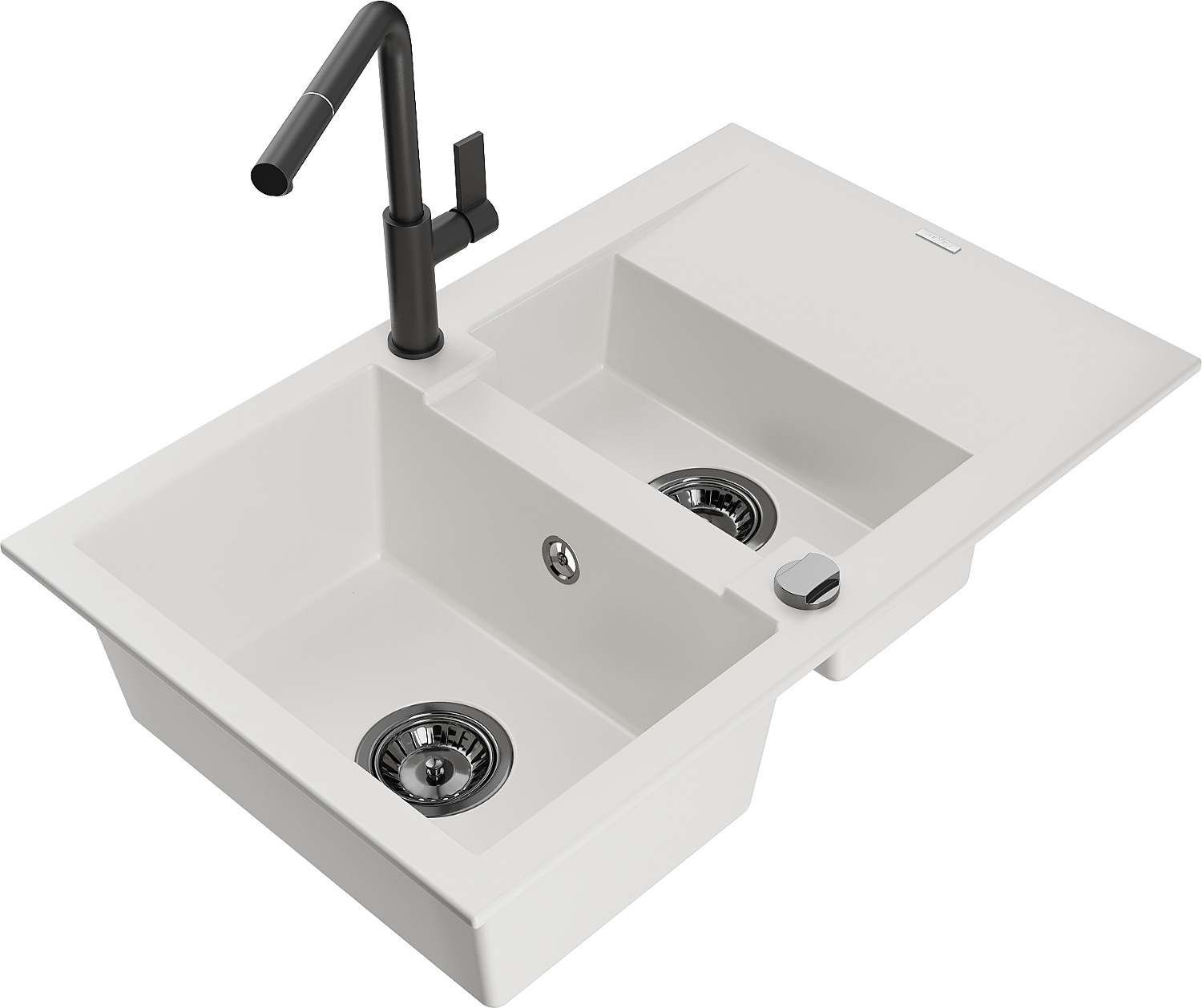 Mexen Gaspar lavello in granito 1,5 vasche con sgocciolatoio e rubinetto da cucina Flora, bianco - 6507-20-670401-70-B