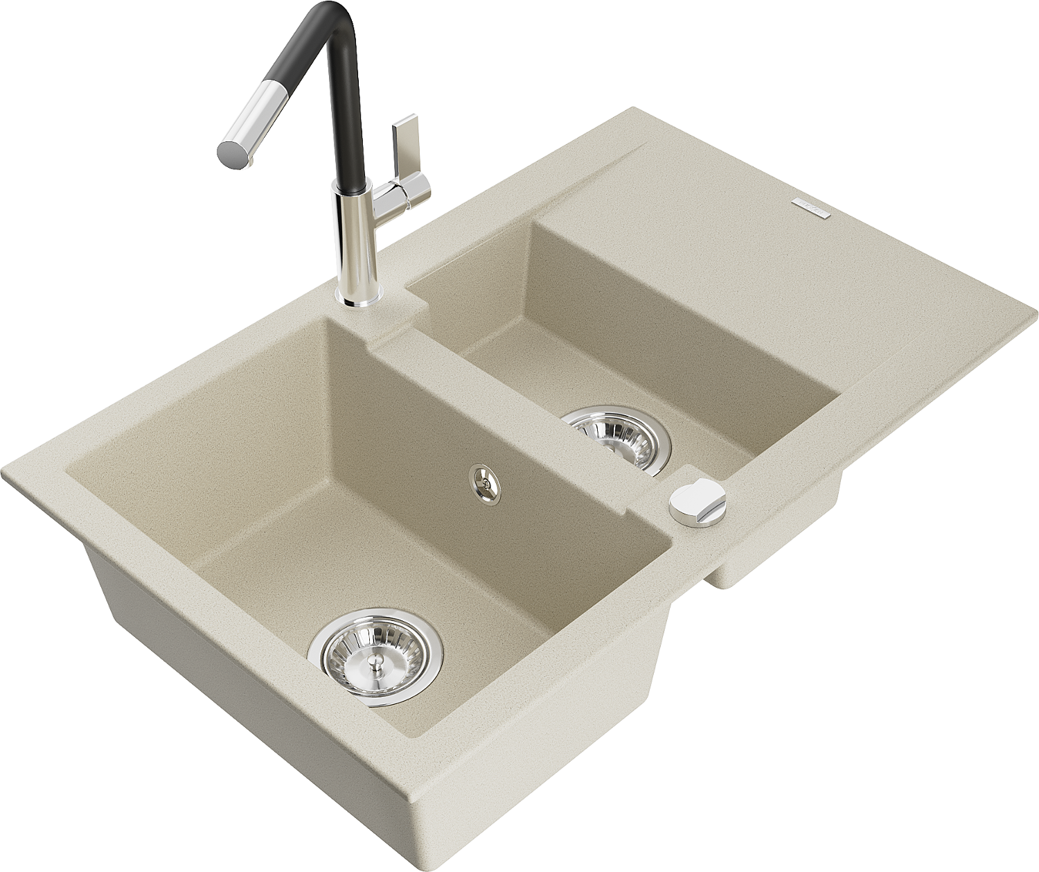 Mexen Gaspar lavello in granito 1,5 vasche con gocciolatoio e rubinetto da cucina Flora, beige - 6507-69-670401-07