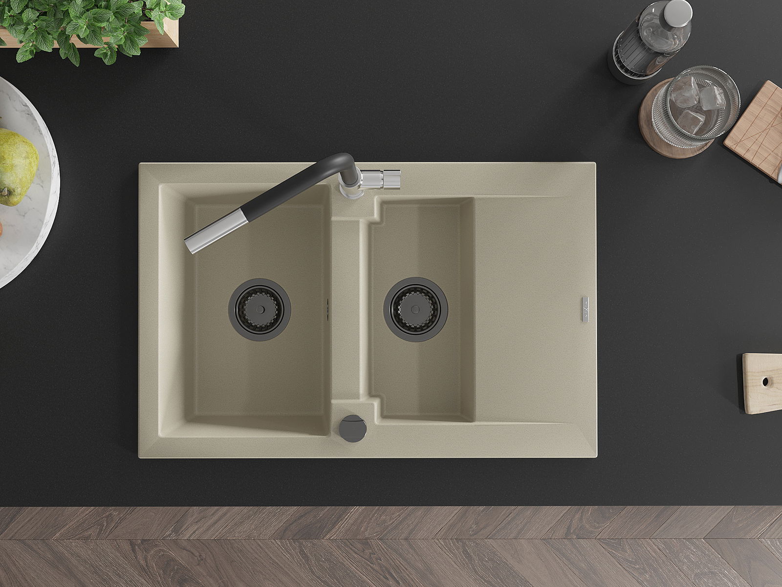 Mexen Gaspar lavello in granito 1,5 vasca con scolapiatti e rubinetto da cucina Flora, beige - 6507-69-670401-07-B