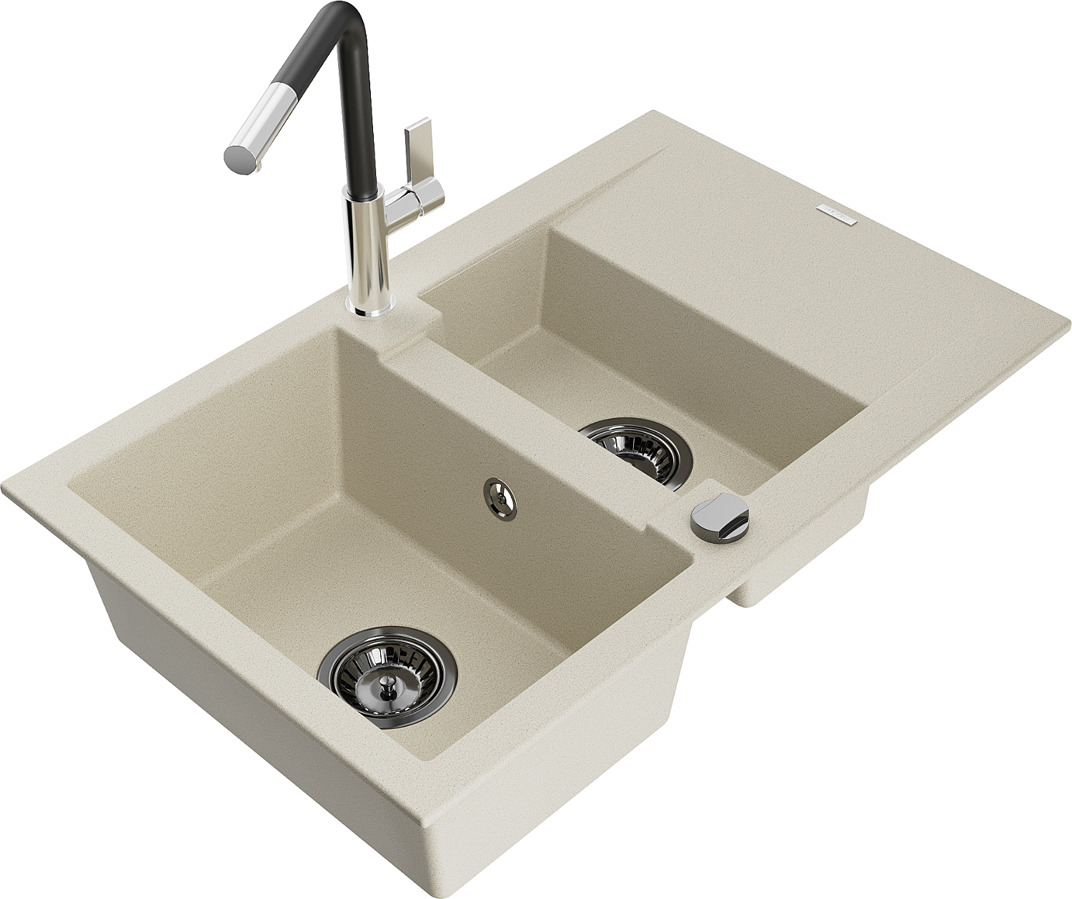 Il lavello è realizzato in granito di alta qualità. Rappresenta un complemento elegante e, soprattutto, pratico per ogni cucina, indipendentemente dal suo stile. L'alta qualità e la durata del granito garantiscono un utilizzo che dura per molti anni.