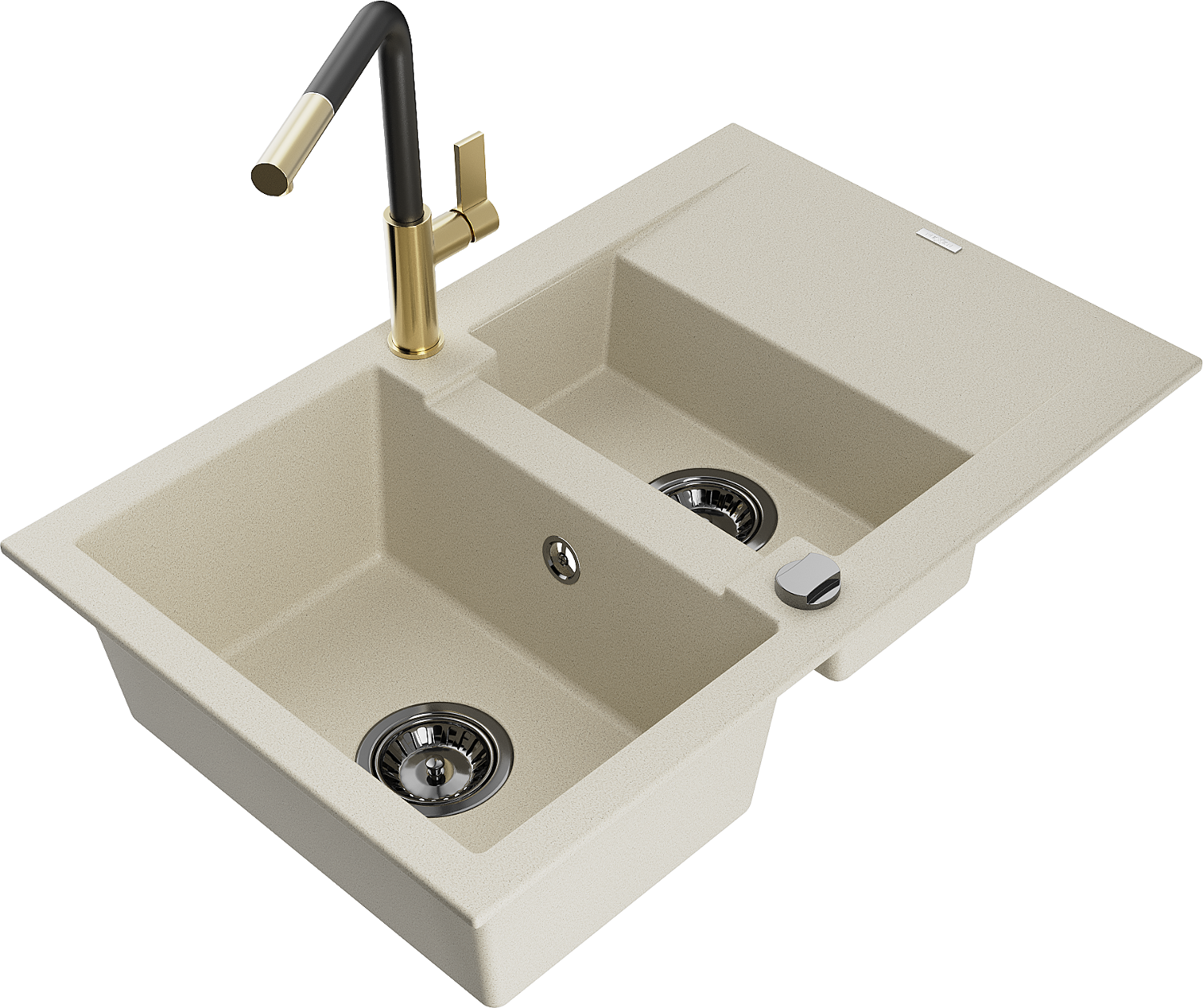 Mexen Gaspar lavello in granito a 1,5 vasche con sgocciolatoio e rubinetto da cucina Flora, beige - 6507-69-670401-57-B