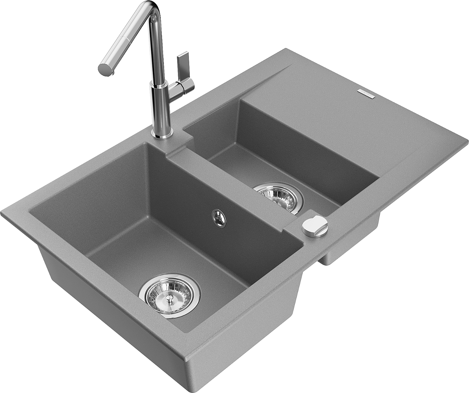 Mexen Gaspar lavello in granito 1,5 vasche con scolapiatti e rubinetto cucina Flora, grigio - 6507-71-670401-00