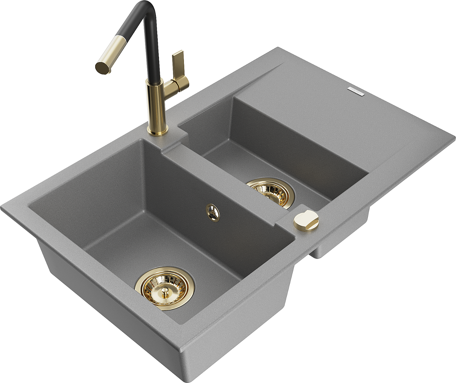 Mexen Gaspar lavello in granito da 1,5 vasche con scolapiatti e rubinetto cucina Flora, grigio - 6507-71-670401-57-G
