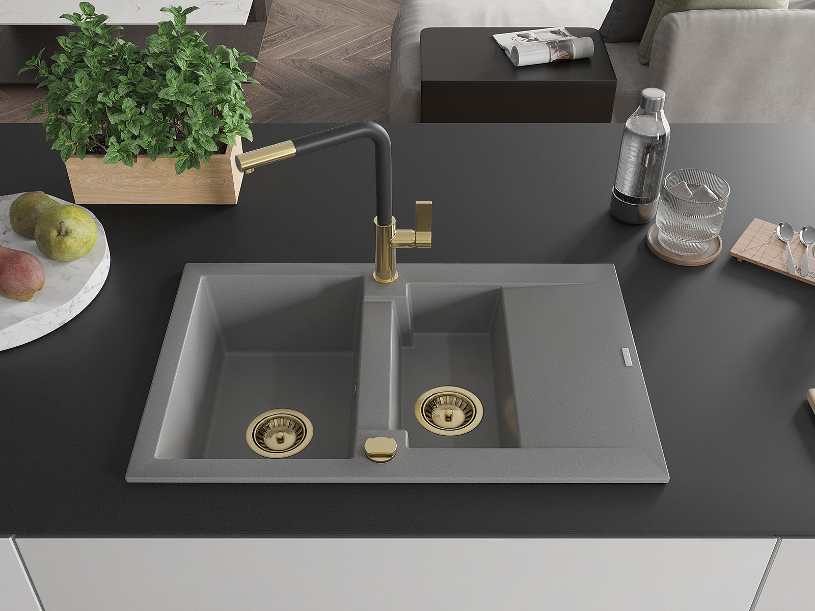 Il lavello è realizzato in granito di alta qualità. Rappresenta un complemento elegante e, soprattutto, pratico per ogni cucina, indipendentemente dal suo stile. L'alta qualità e la durata del granito garantiscono un utilizzo che dura per molti anni.