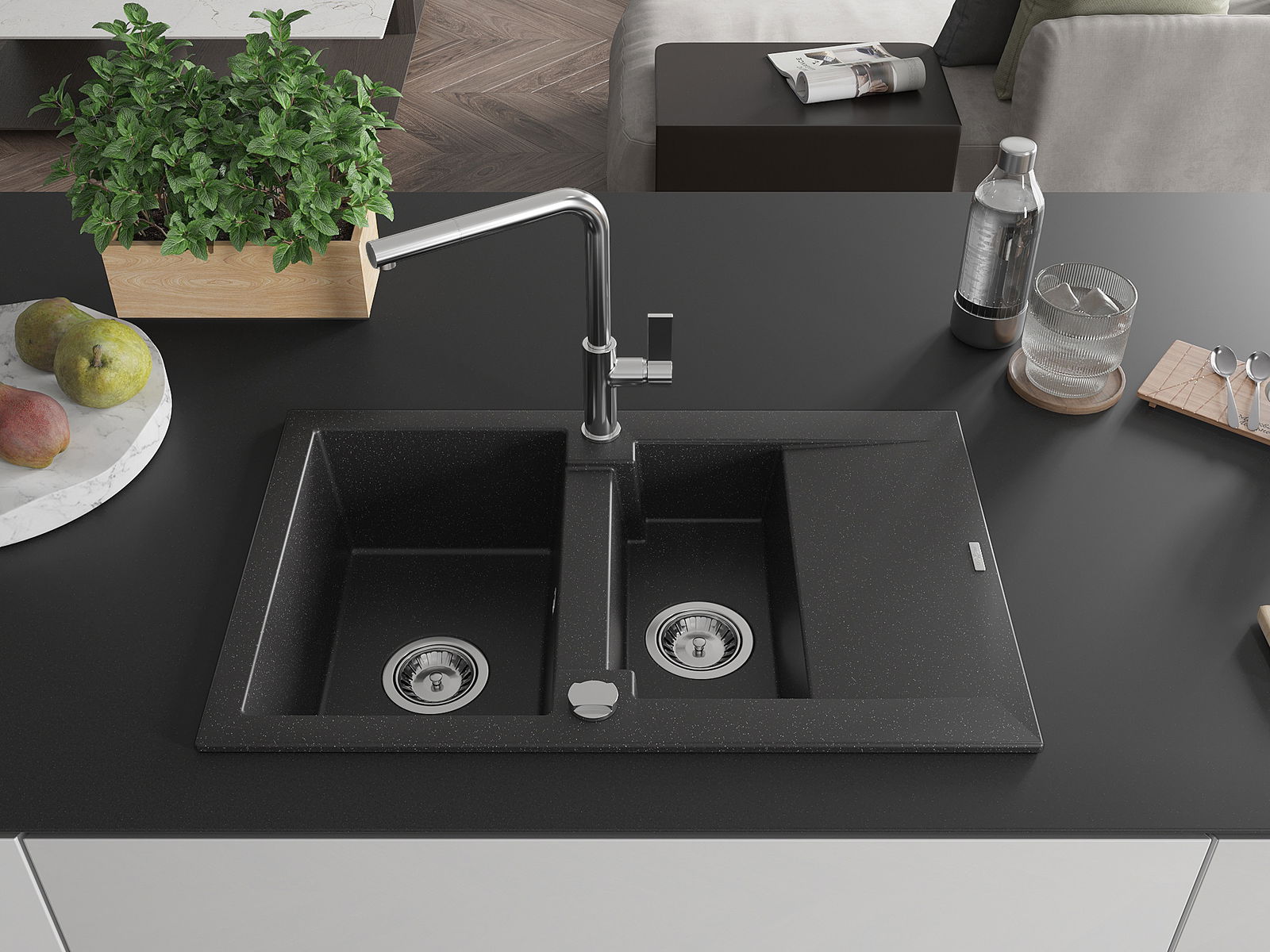 Il lavello è realizzato in granito di alta qualità. Rappresenta un complemento elegante e, soprattutto, pratico per ogni cucina, indipendentemente dal suo stile. L'alta qualità e la durata del granito garantiscono un utilizzo che dura per molti anni.