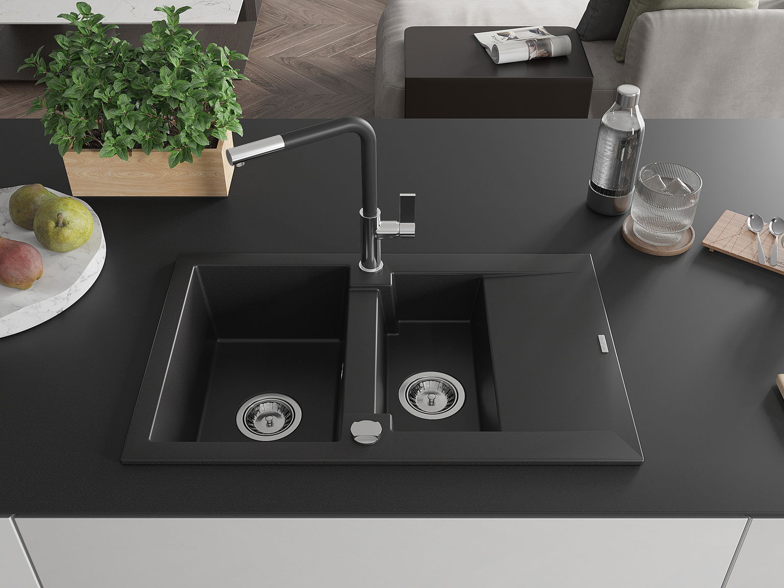 La scelta di un lavello con sgocciolatoio è una soluzione pratica che consente di riporre piatti, verdure e frutta lavati. Lo sgocciolatoio facilita la cucina quotidiana e aiuta a mantenere l'ordine in cucina.