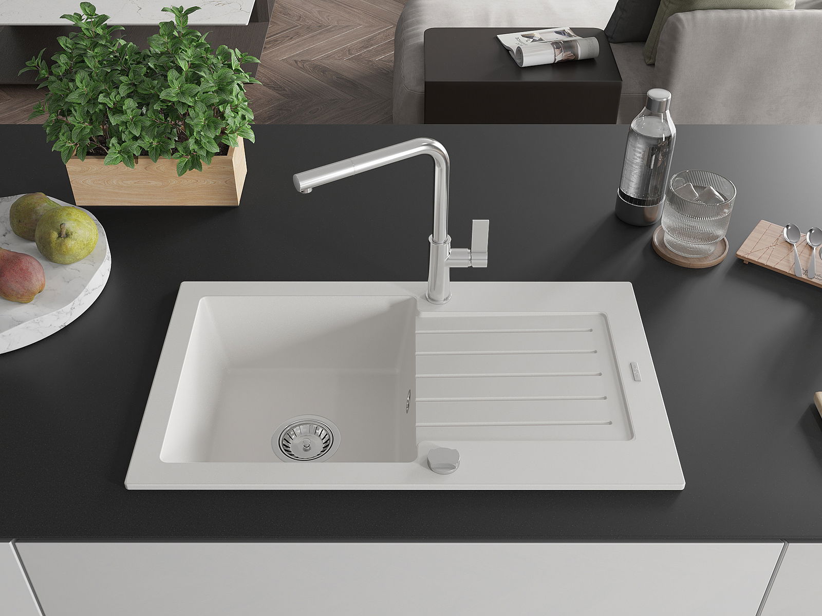 La scelta di un lavello con sgocciolatoio è una soluzione pratica che consente di riporre piatti, verdure e frutta lavati. Lo sgocciolatoio facilita la cucina quotidiana e aiuta a mantenere l'ordine in cucina.