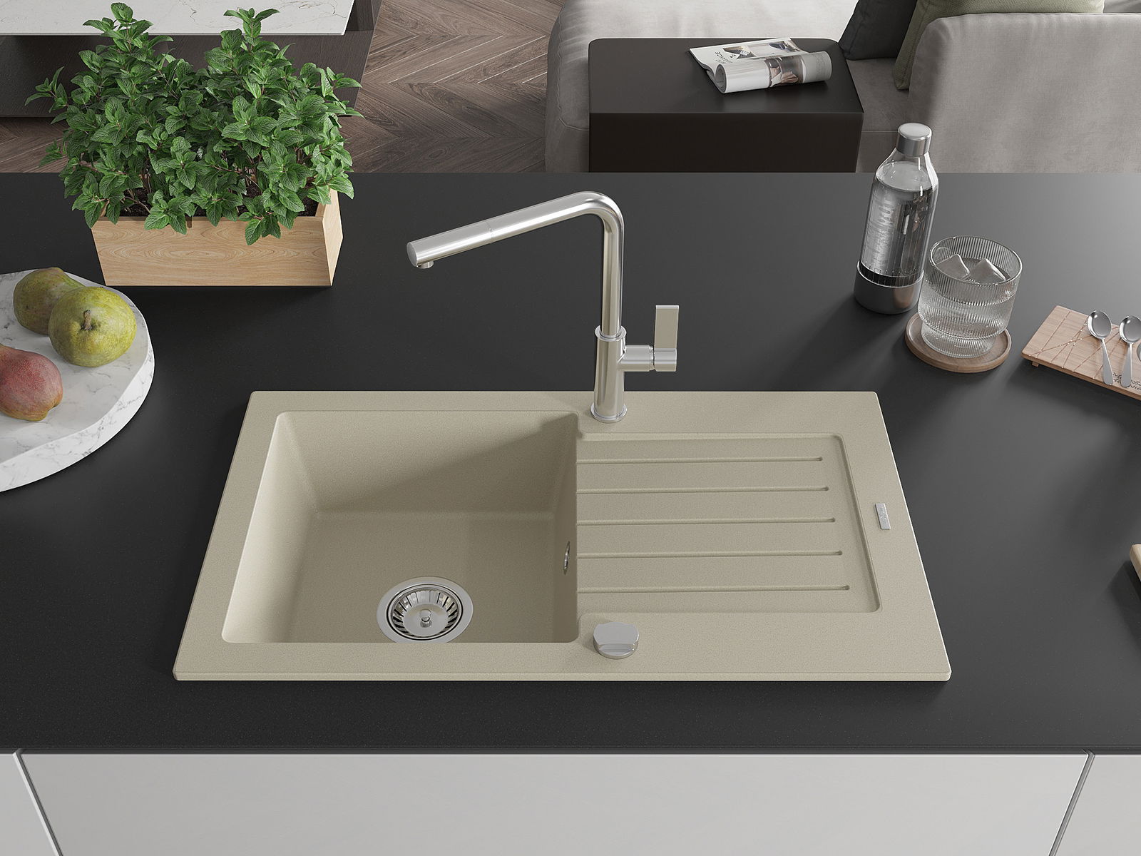 Mexen Pablo lavello da cucina in granito ad 1 vasca con scolapiatti e rubinetto Flora, beige - 6510-69-670401-00