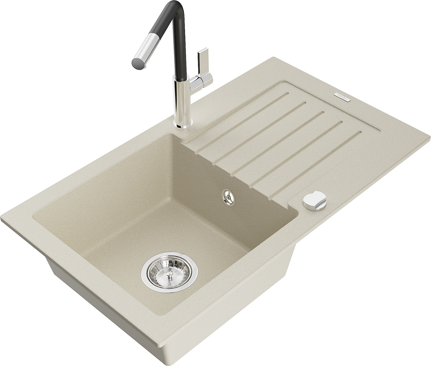 Il lavello è realizzato in granito di alta qualità. Rappresenta un complemento elegante e, soprattutto, pratico per ogni cucina, indipendentemente dal suo stile. L'alta qualità e la durata del granito garantiscono un utilizzo che dura per molti anni.