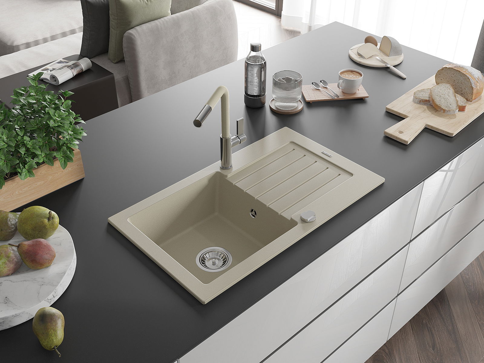Il lavello è realizzato in granito di alta qualità. Rappresenta un complemento elegante e, soprattutto, pratico per ogni cucina, indipendentemente dal suo stile. L'alta qualità e la durata del granito garantiscono un utilizzo che dura per molti anni.