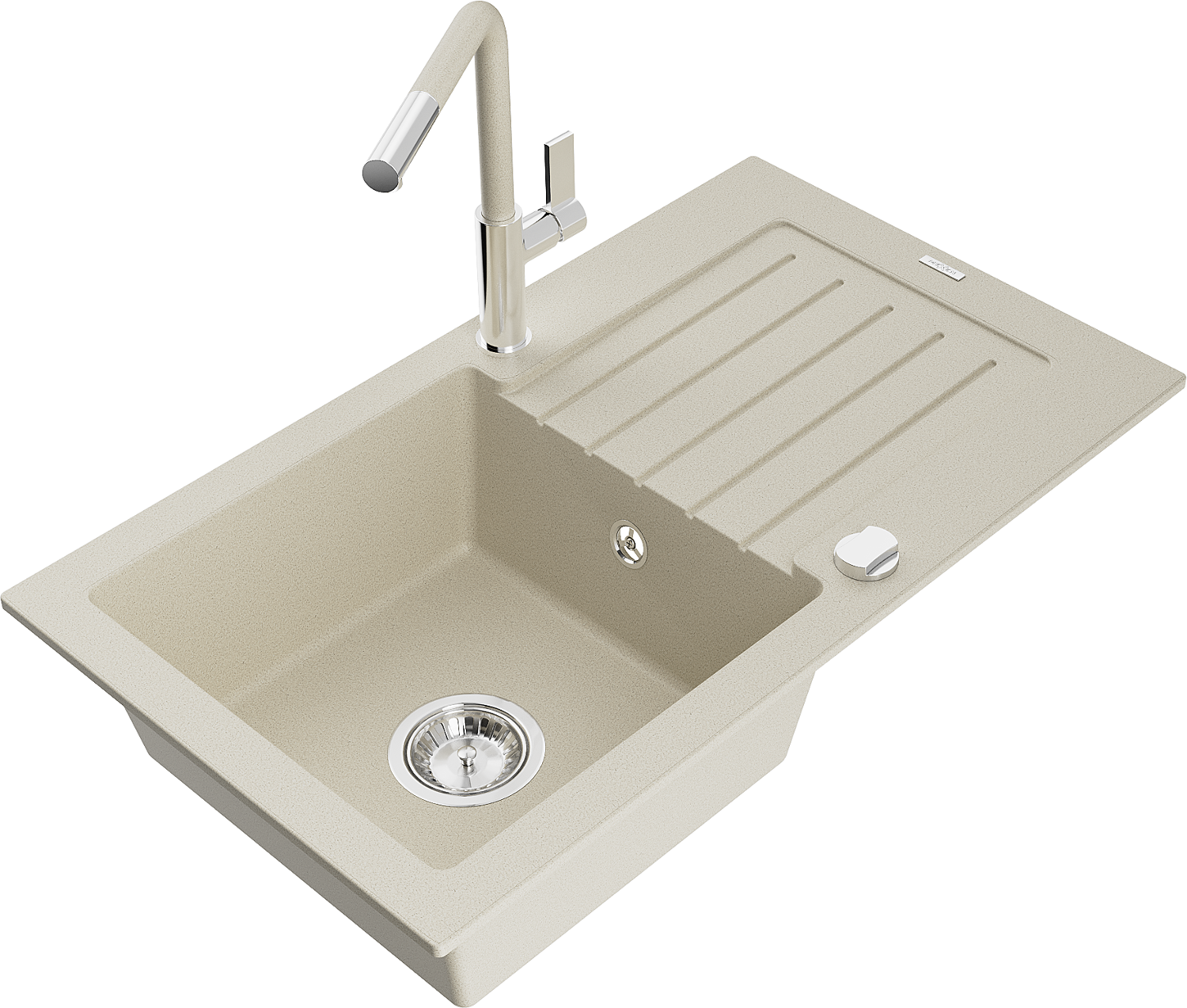 Mexen Pablo lavello da cucina in granito con 1 vasca, scolatoio e rubinetto cucina Flora, beige - 6510-69-670401-09