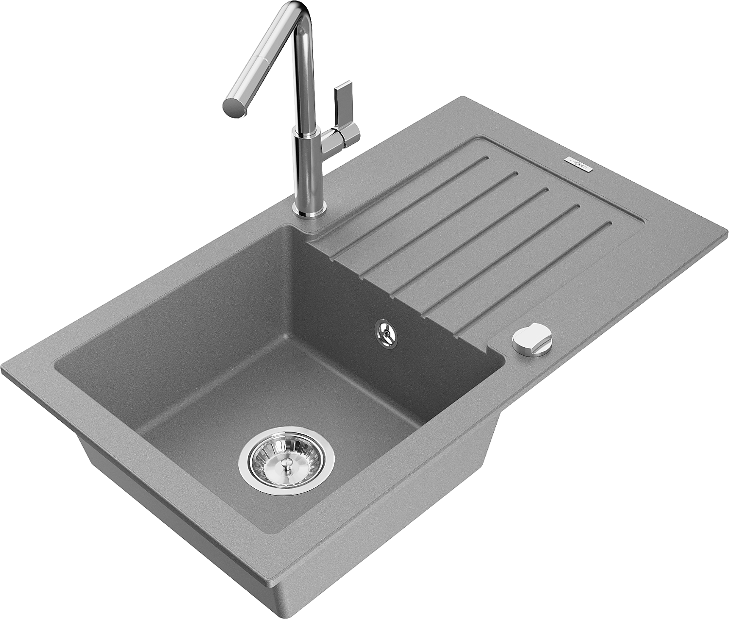 Mexen Pablo lavello in granito a 1 vasca con scolapiatti e rubinetto da cucina Flora, grigio - 6510-71-670401-00