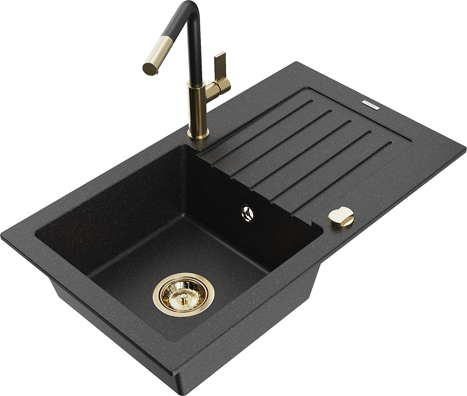Mexen Pablo lavello in granito a 1 vasca con sgocciolatoio e rubinetto da cucina Flora, nero/metallo argento