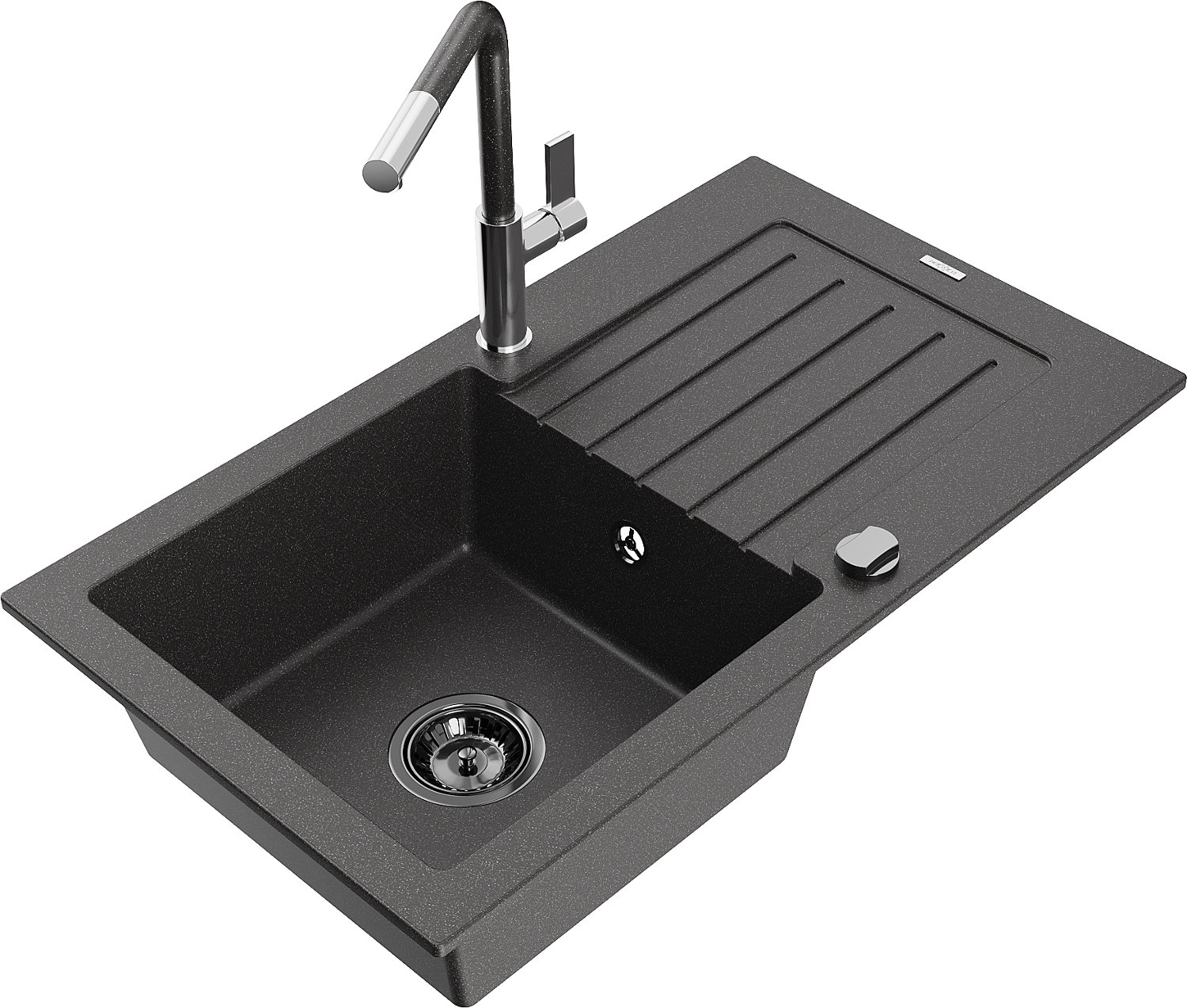 Il lavello è realizzato in granito di alta qualità. Rappresenta un complemento elegante e, soprattutto, pratico per ogni cucina, indipendentemente dal suo stile. L'alta qualità e la durata del granito garantiscono un utilizzo che dura per molti anni.