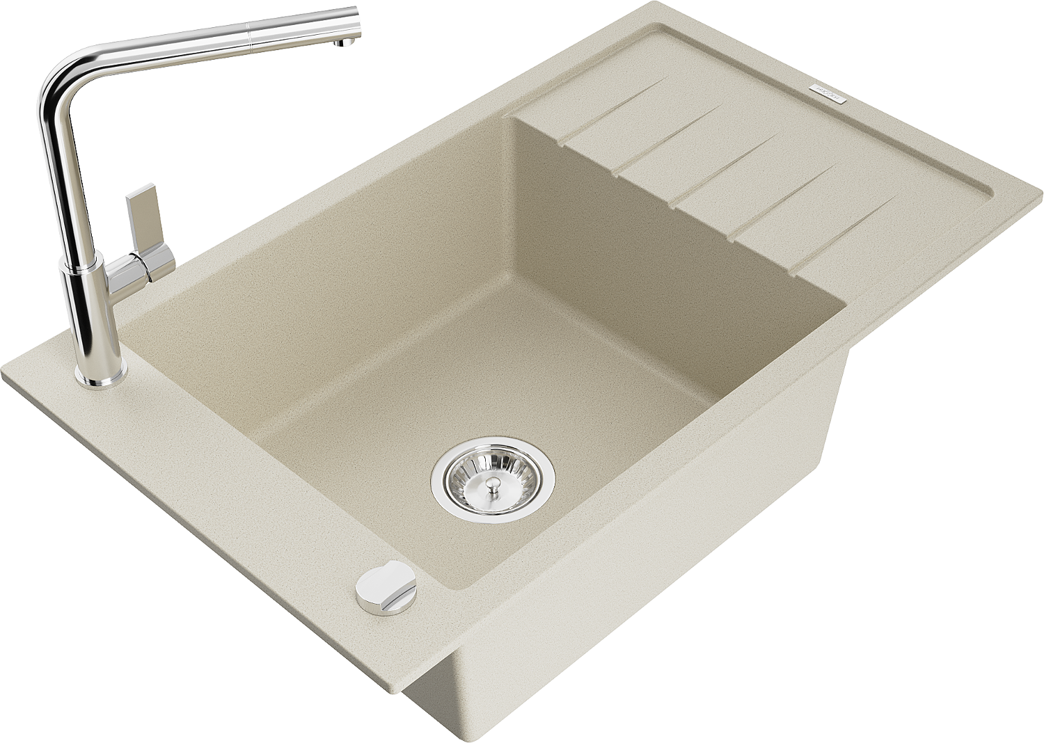 Mexen Elias lavello in granito 1-vasca con scolapiatti e rubinetto da cucina Flora, beige - 6511-69-670401-00