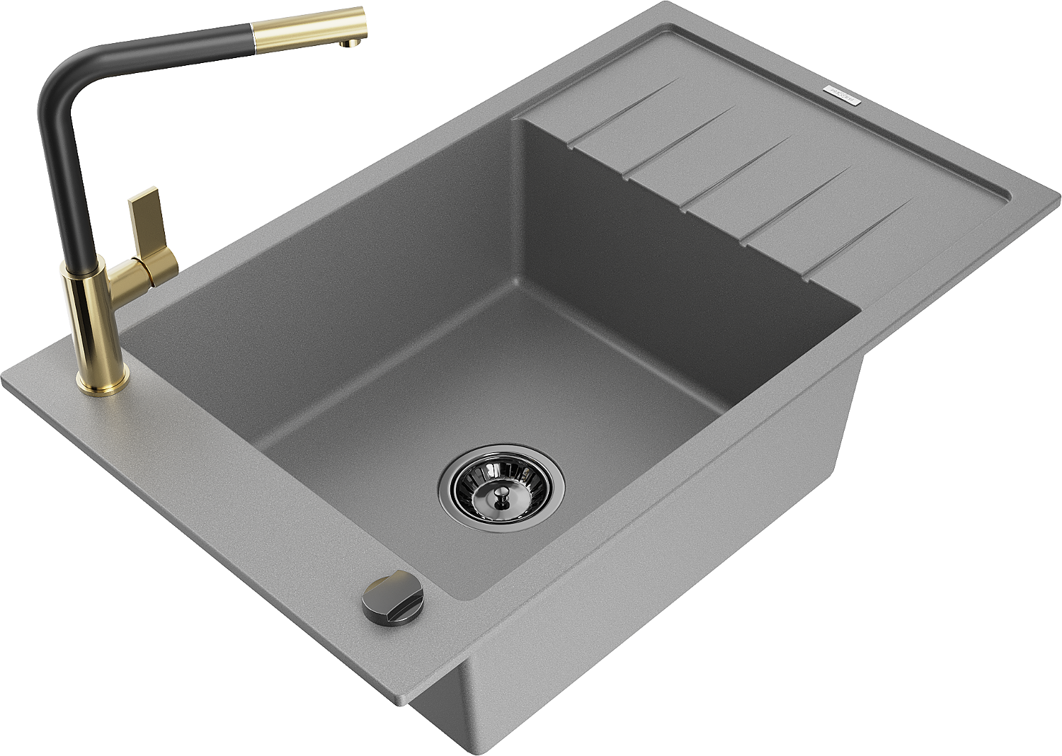 Mexen Elias lavello da cucina in granito a 1 vasca con scolapiatti e miscelatore Flora, grigio - 6511-71-670401-57-B
