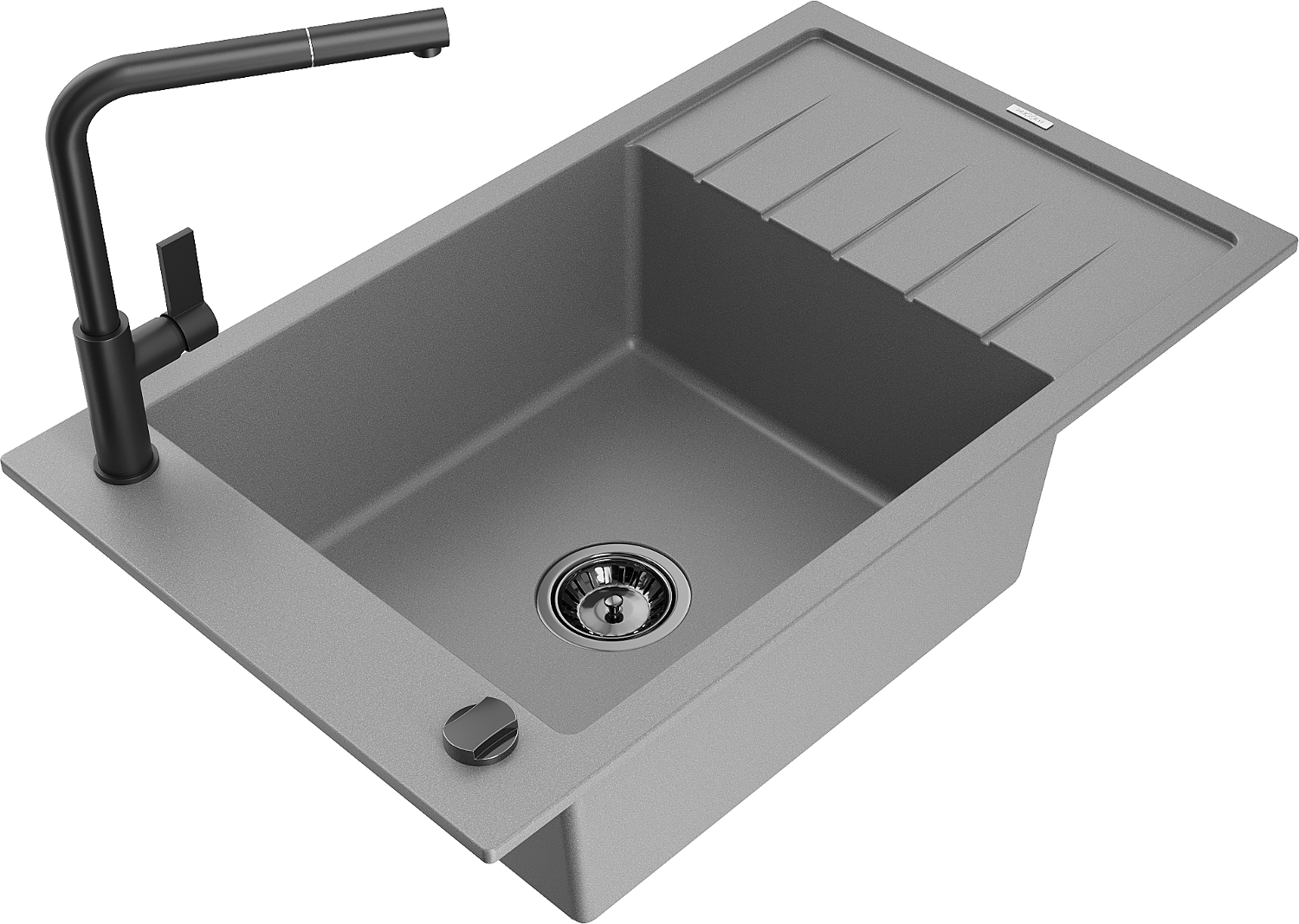 Mexen Elias lavello in granito a 1 vasca con sgocciolatoio e rubinetto da cucina Flora, grigio - 6511-71-670401-70-B