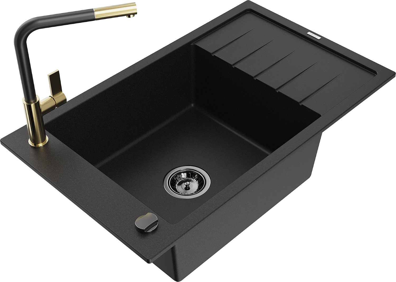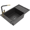 Mexen Elias lavello da cucina in granito a 1 vasca con sgocciolatoio e rubinetto da cucina Flora, nero - 6511-77-670401-57-B