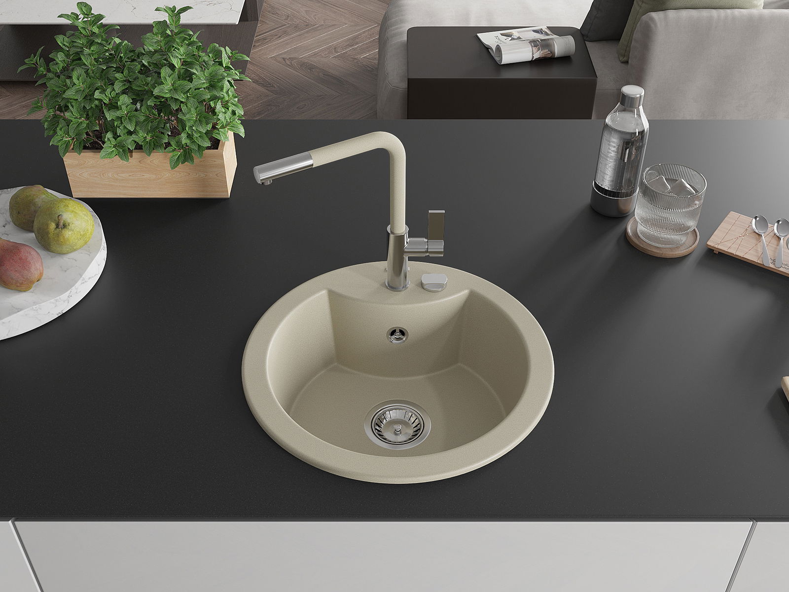 Il lavello è realizzato in granito di alta qualità. Rappresenta un complemento elegante e, soprattutto, pratico per ogni cucina, indipendentemente dal suo stile. L'alta qualità e la durata del granito garantiscono un utilizzo che dura per molti anni.